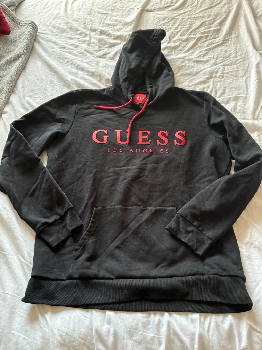 Selling a Guess Los Angeles hoodie in black, size men’s XL.