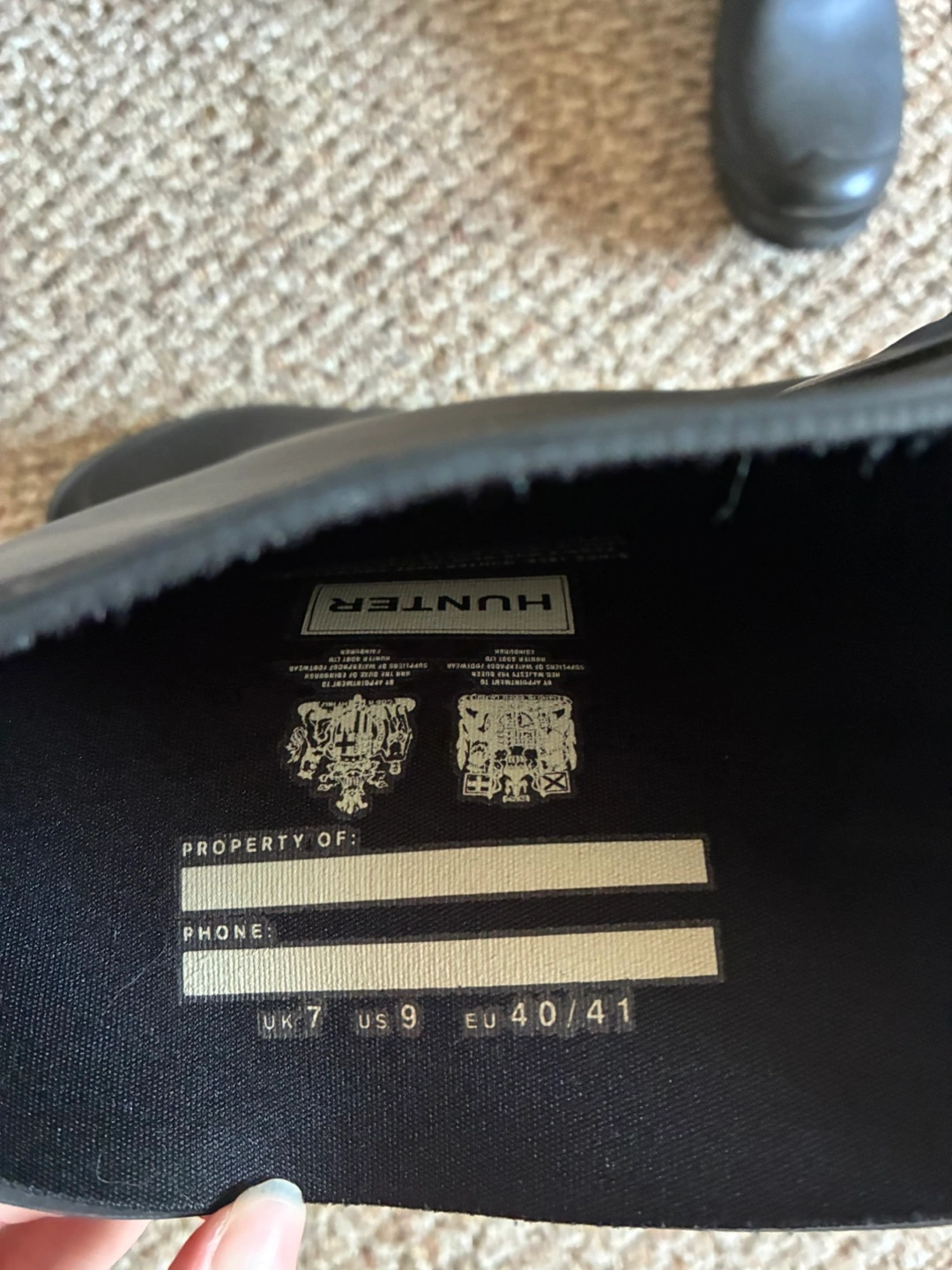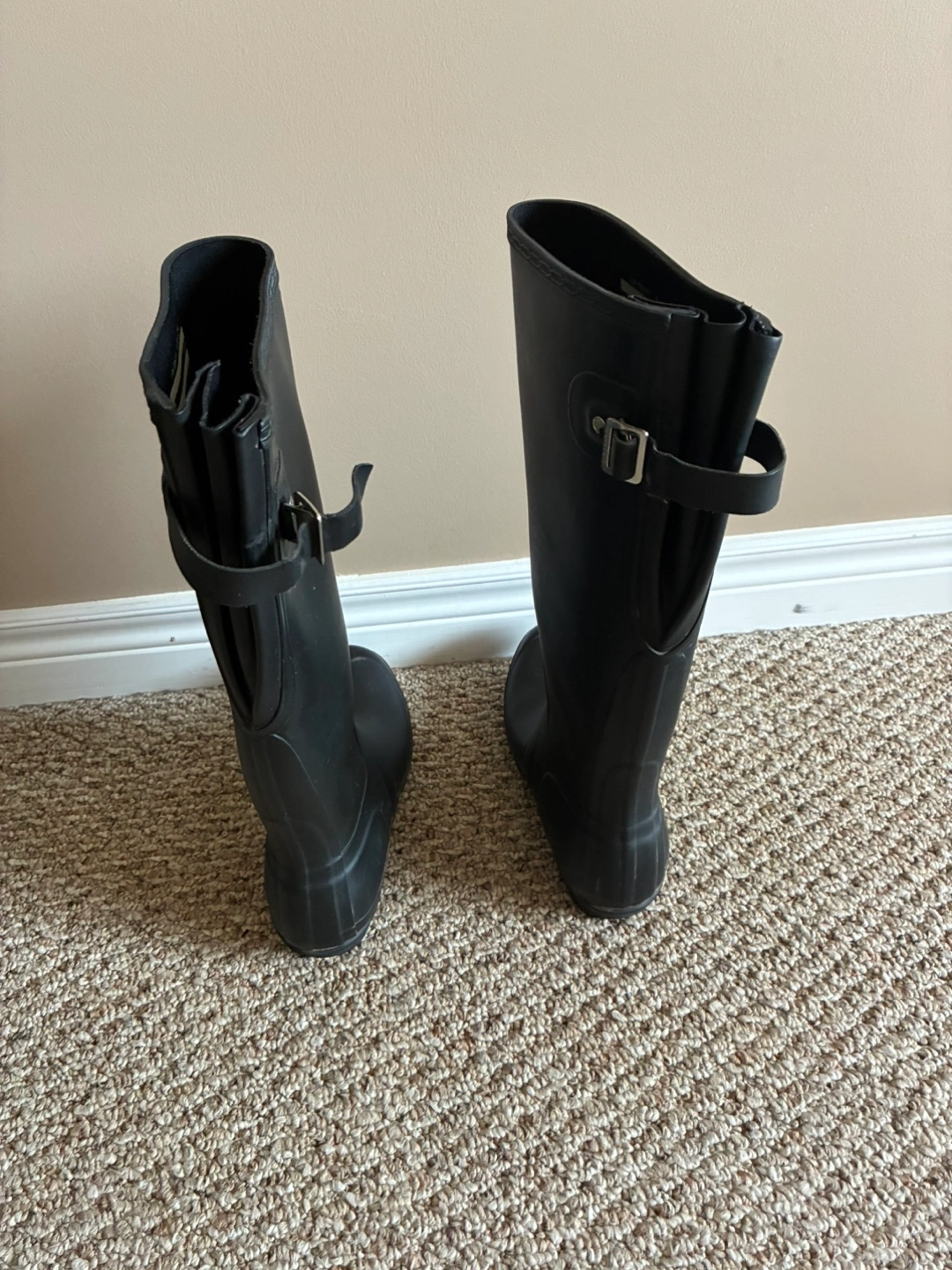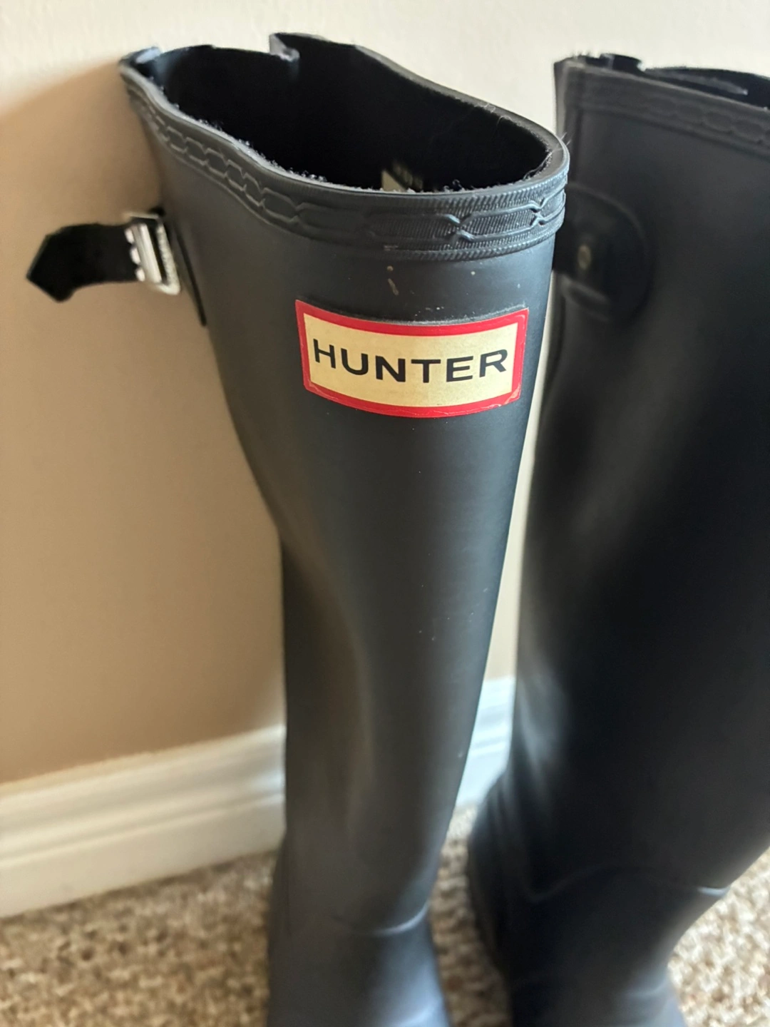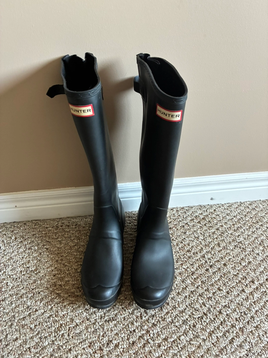 Selling a pair of Hunter rain boots in US size 9, with an extender back. They're in great condition!
