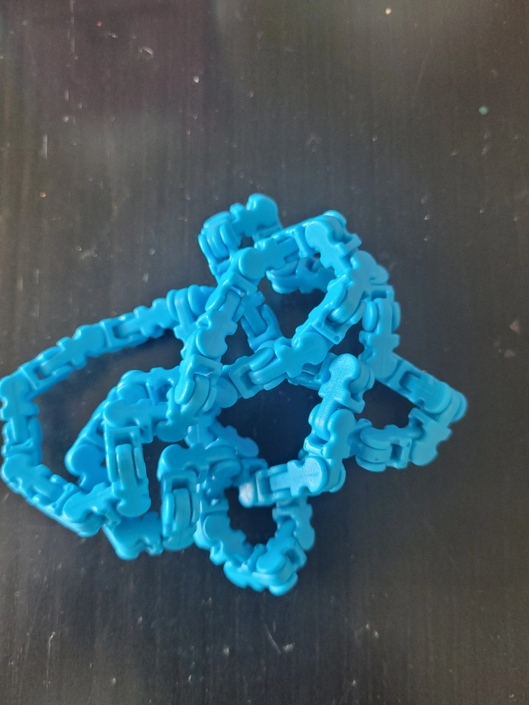 1000+Check out this fun fidget toy! It's a blue wacky track that snaps and clicks, perfect for keeping your hands busy. It's in great condition and ready for a new home!