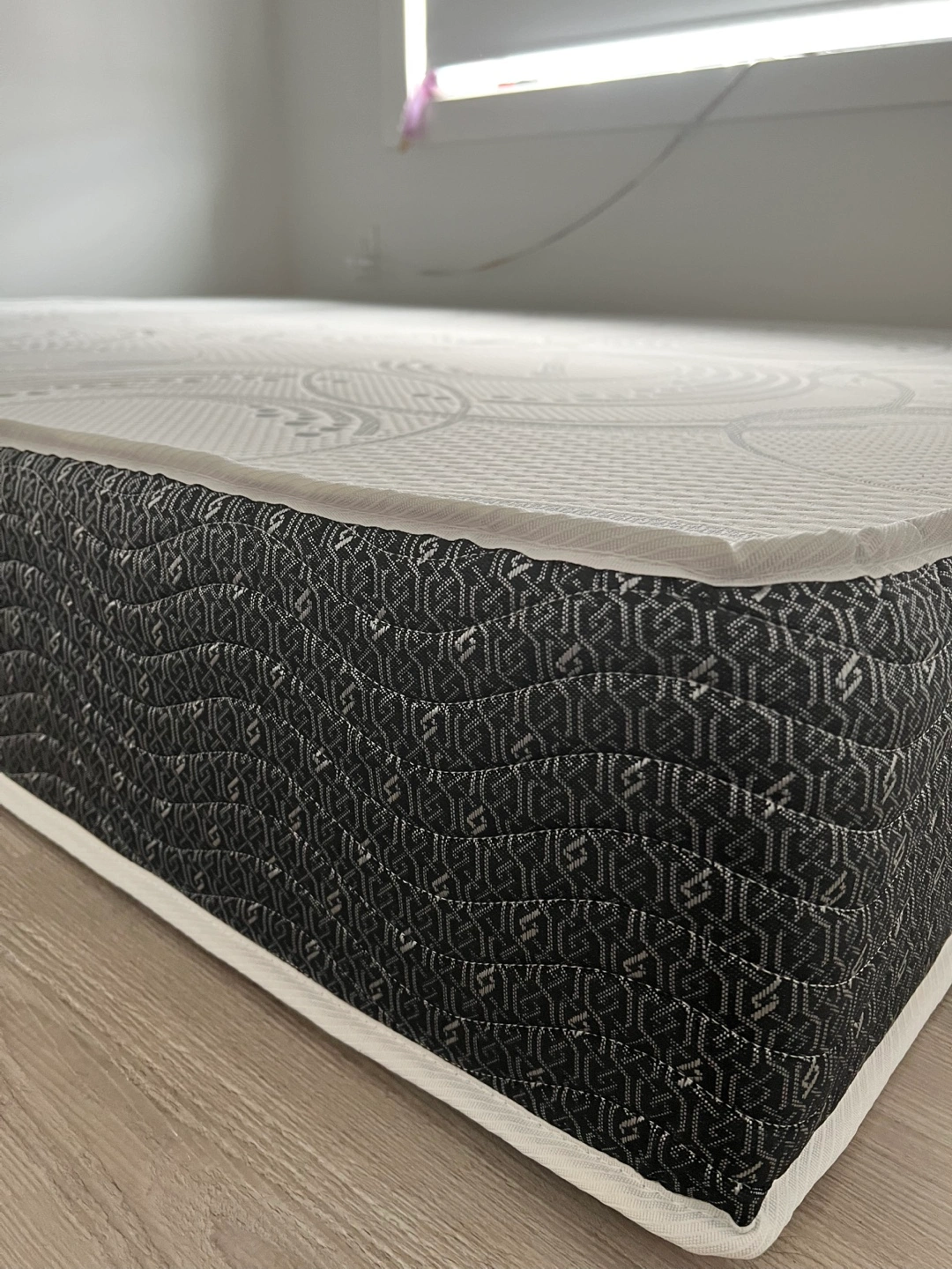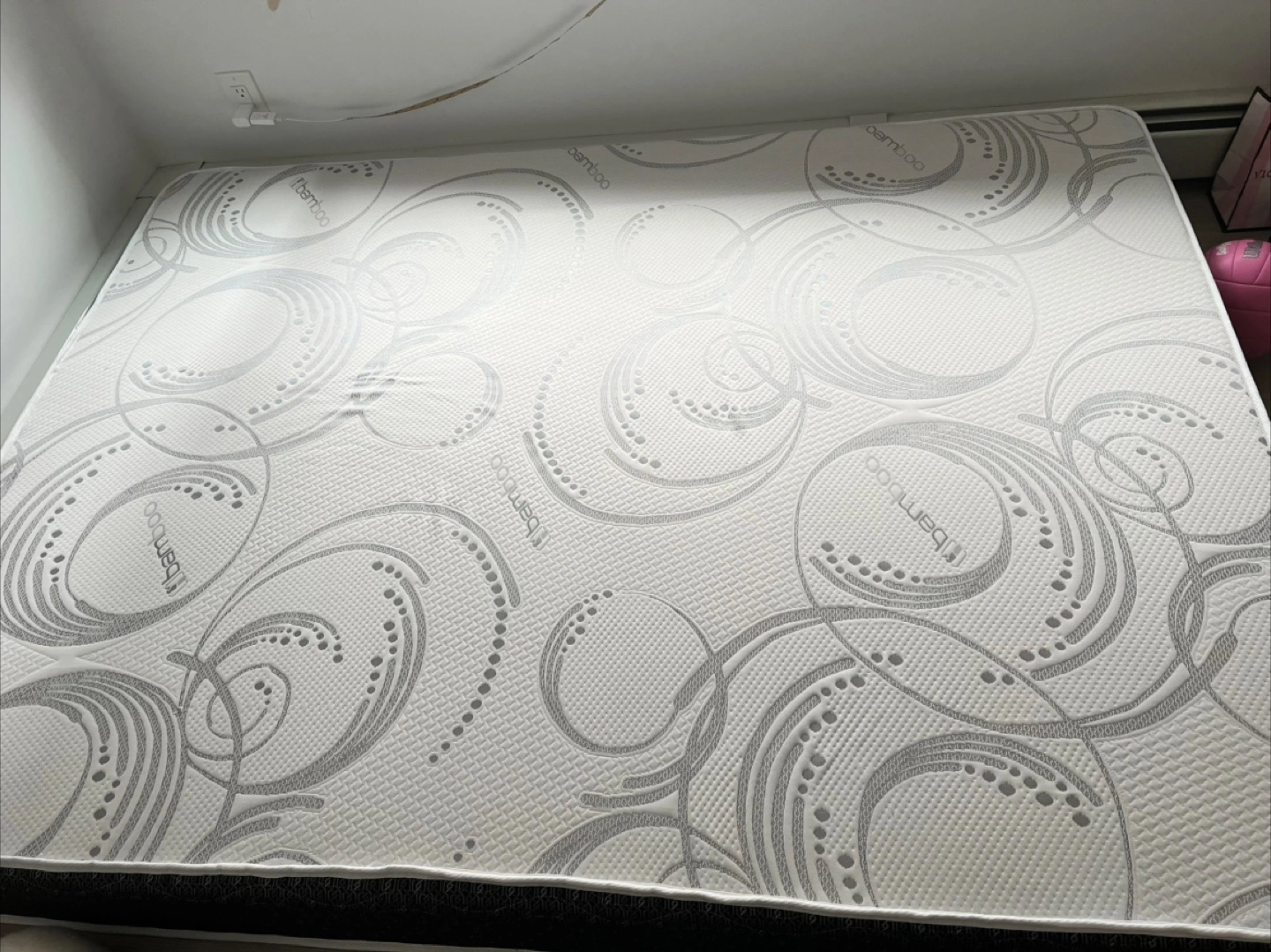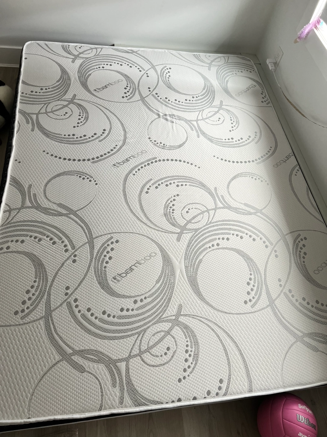 Selling a Bamboo mattress. It's in great condition and ready for a new home used only for 9 months. The mattress features a unique design pattern on the top and a stylish black and white patterned edge. Smoke free and Pet free.