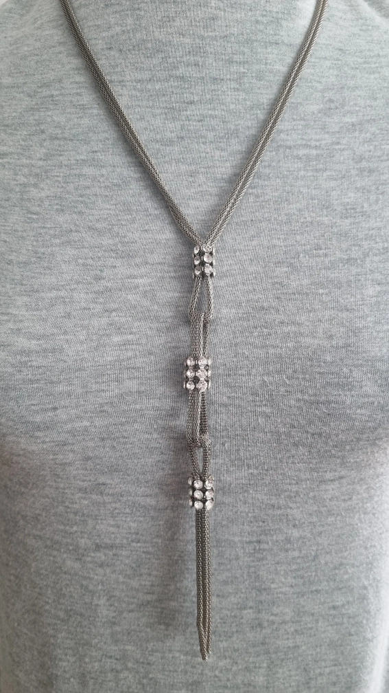 Selling a bundle of necklaces in various styles! Includes a statement necklace with geometric shapes in silver, gold, and black tones, a layered necklace with a blue pendant, and other unique designs. Perfect for adding some flair to any outfit
