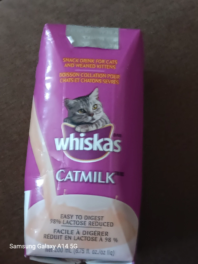 Whiskas Catmilk snack drink for cats and weaned kittens. It's easy to digest and 98% lactose reduced. The expiry date is December 01, 2025