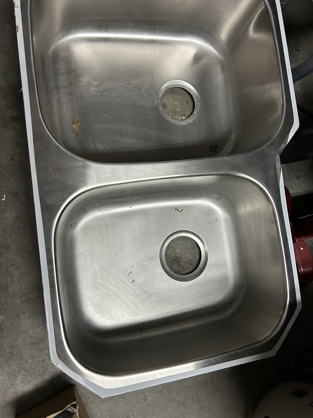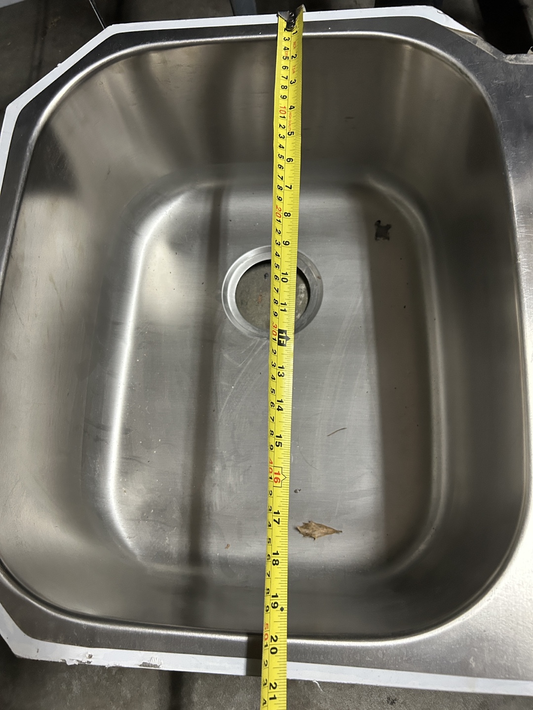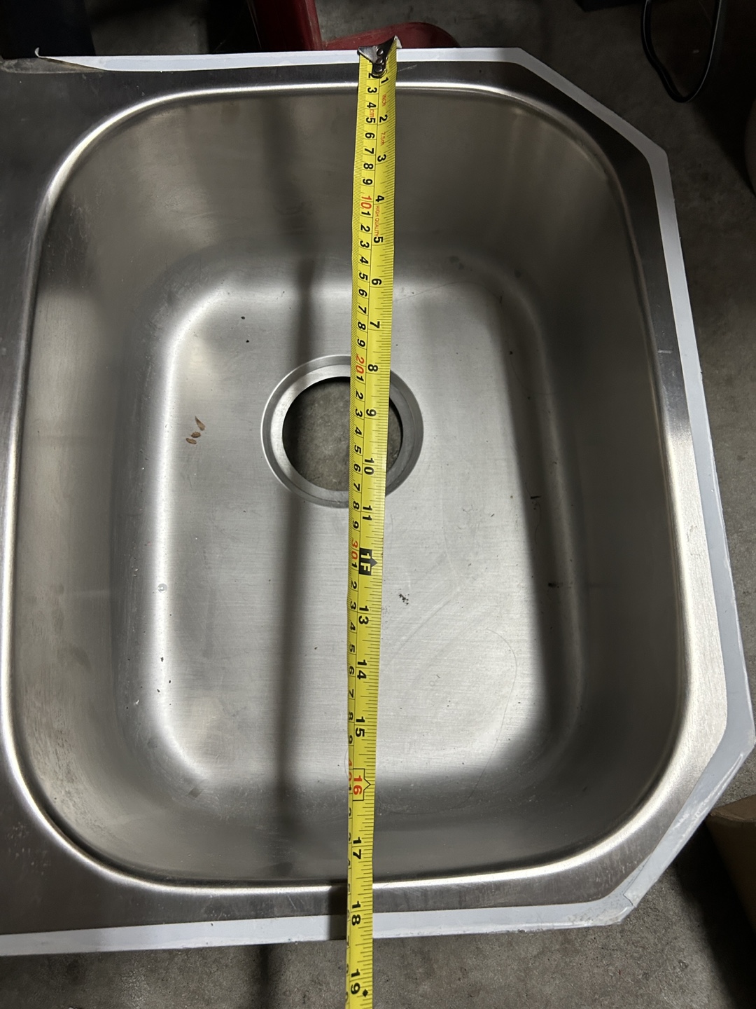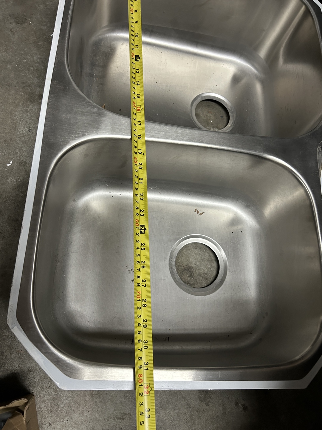 New stainless steel kitchen sink. The single basin measures approximately 19 inches in length. The double basin sink measures approximately 32 inches in length. Great for any kitchen renovation!