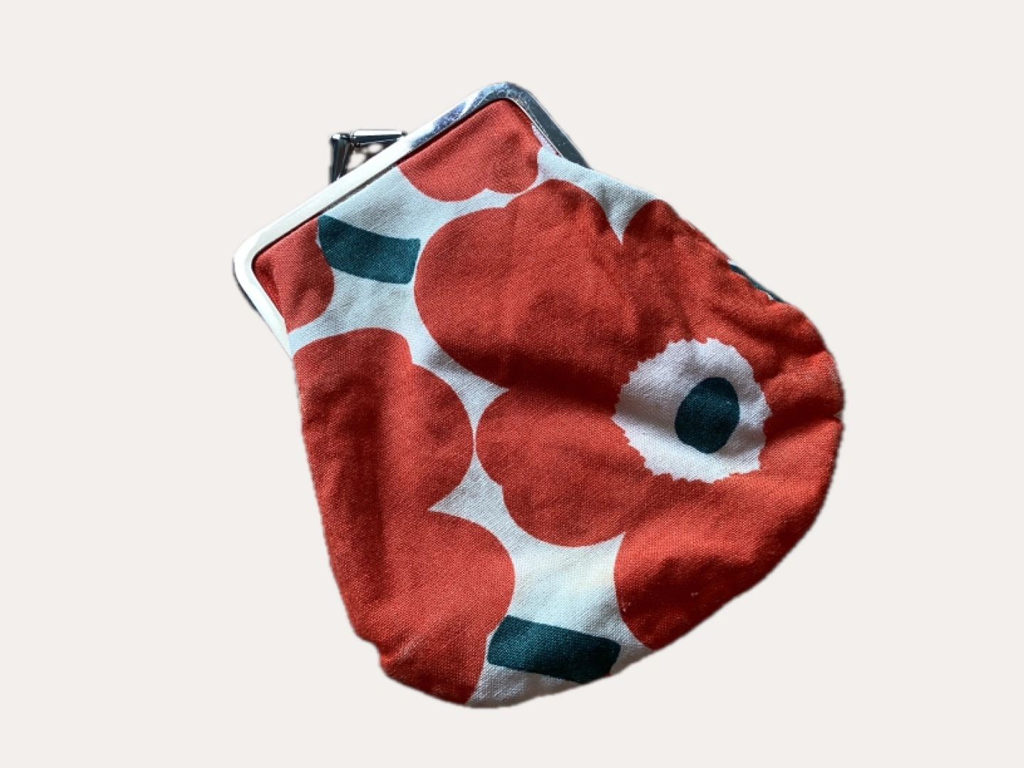 Selling a cute Marimekko coin purse! It features a vibrant floral pattern in red, white, and a touch of green. Perfect for keeping your change organized in style!