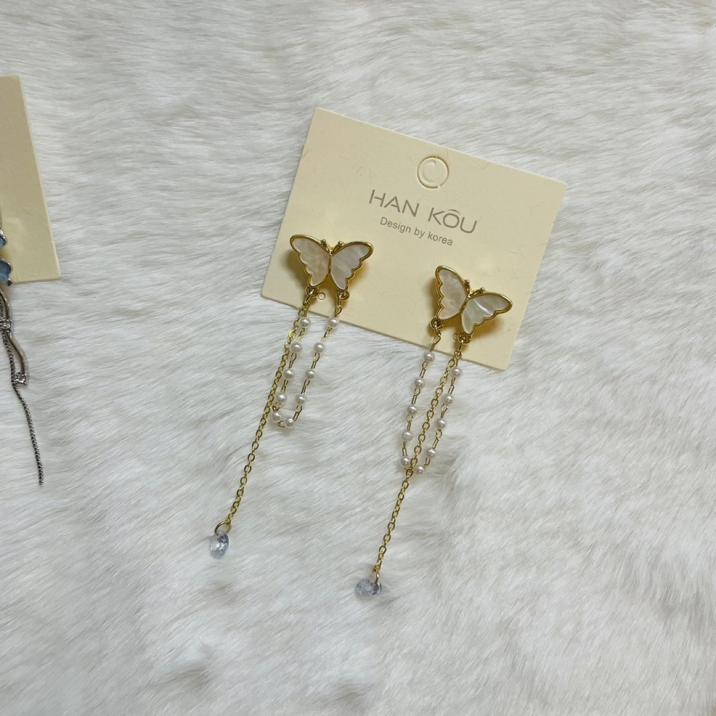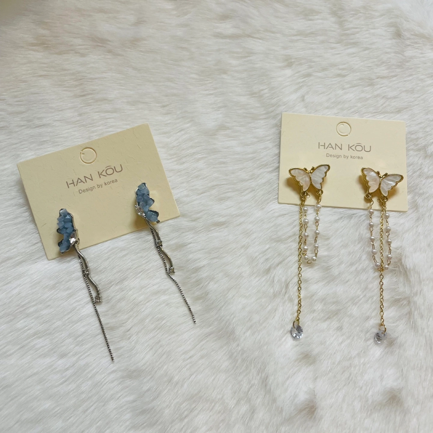 1 for $6, 2 for $10 !!! One pair features delicate butterflies with pearl and crystal accents. The other has beautiful blue stones with a silver chain. Perfect for adding a touch of elegance to any outfit Pickup locations are in Richmond Hill, Markham or DT Toronto. Delivery is also available