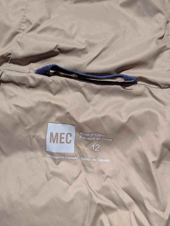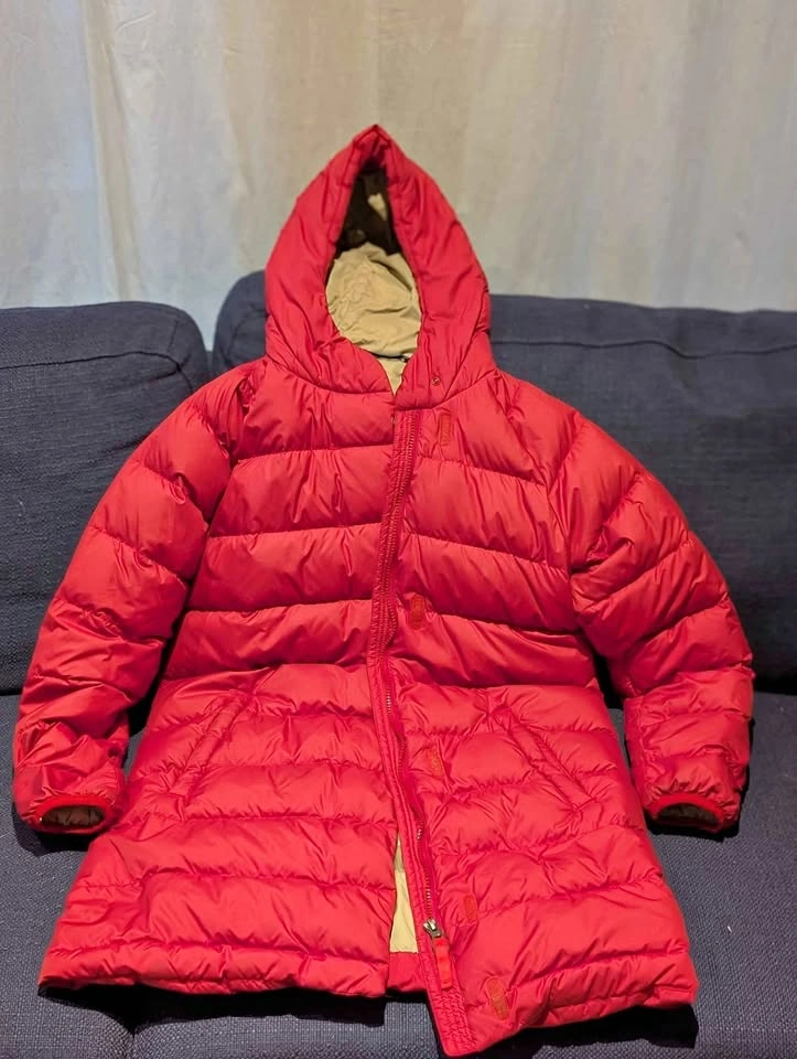 MEC red Besnow long jacket, size 12 – built for serious winter warmth and protection.
