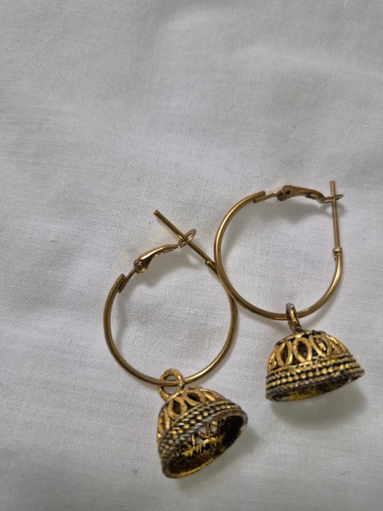 18Cute pair of hoop earrings with jhumka bell pendants. They're in great condition and ready to add a touch of style to your look