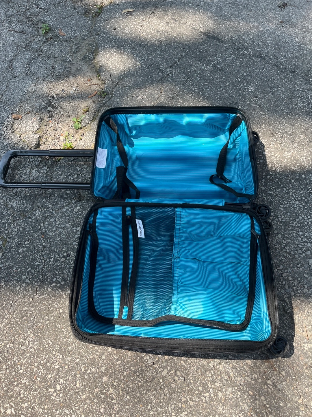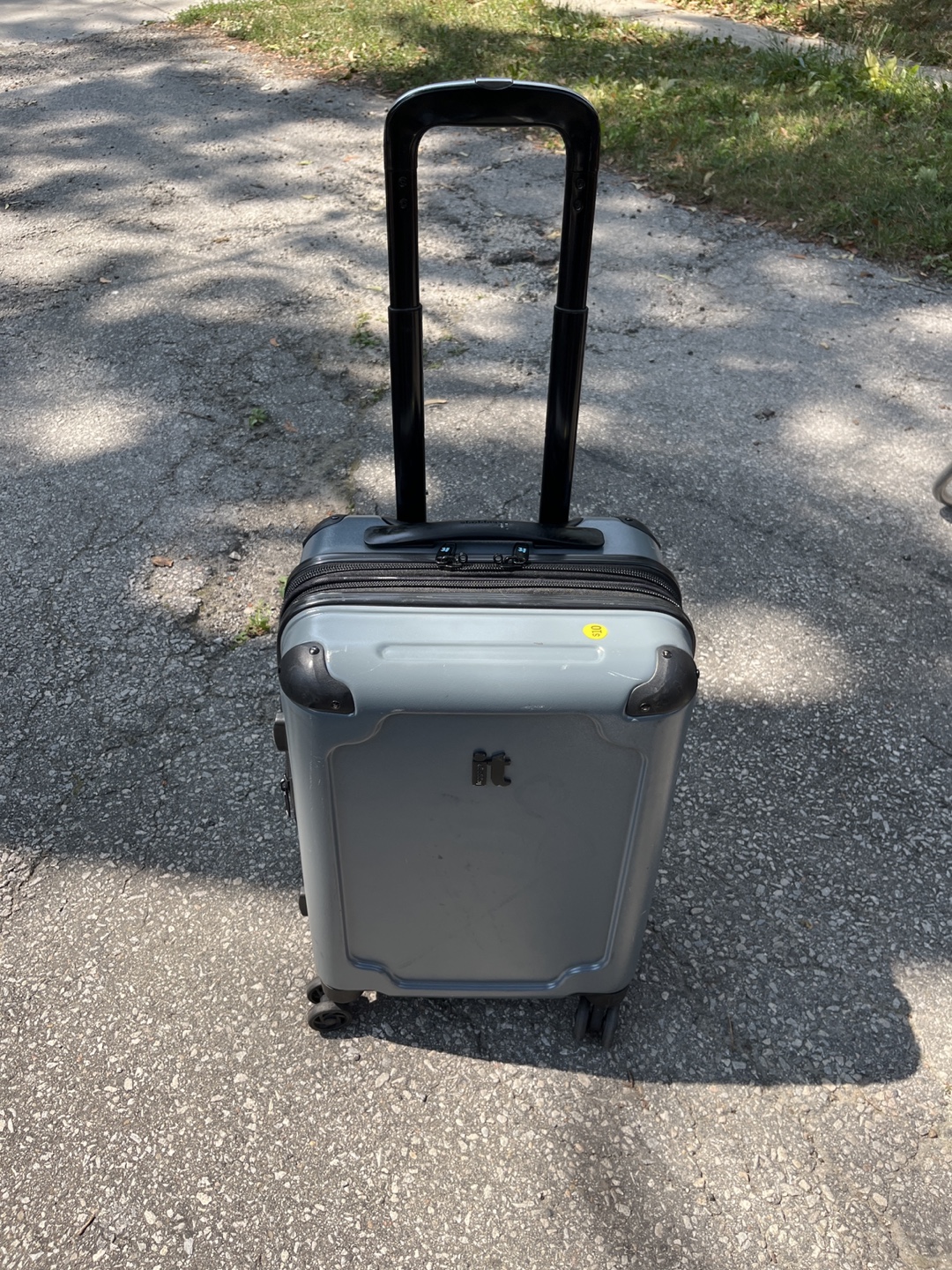 Selling a grey it Luggage carry-on suitcase. It's in great condition and ready for your next trip! The interior is lined with a bright blue fabric. Perfect for short getaways or as a convenient travel companion