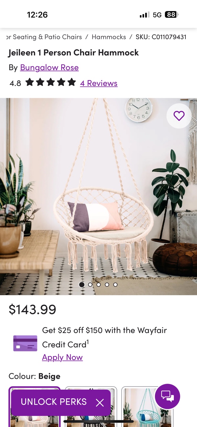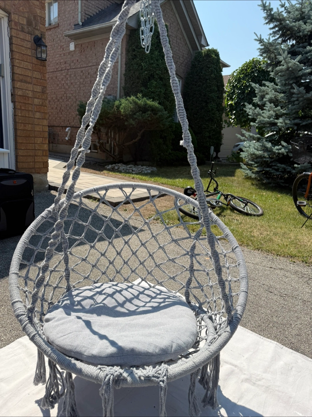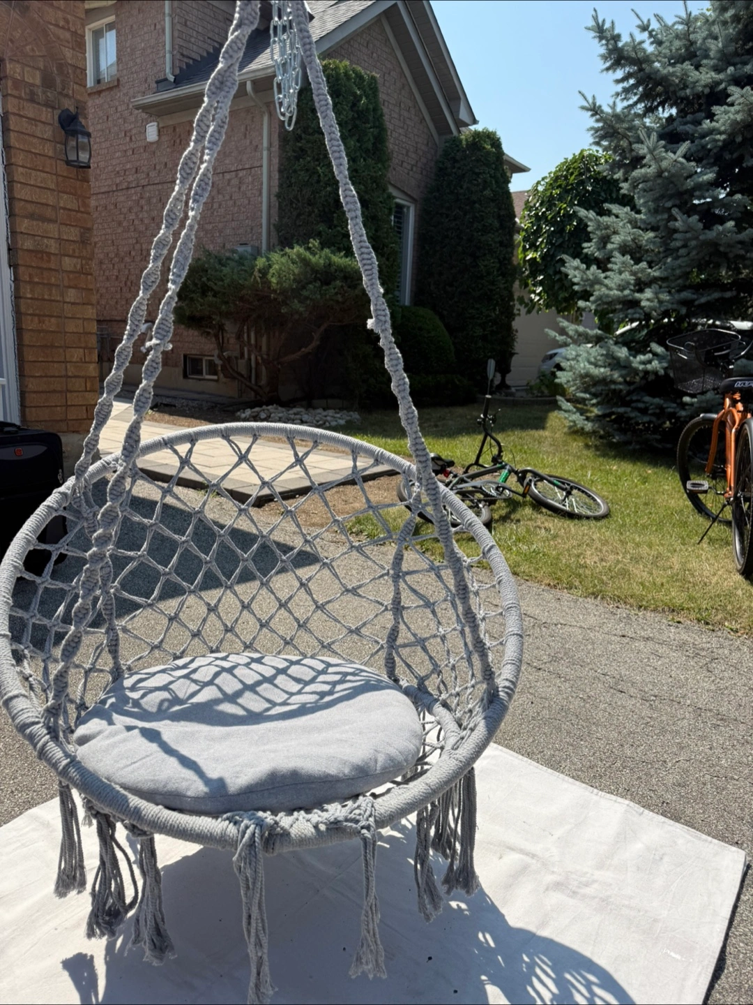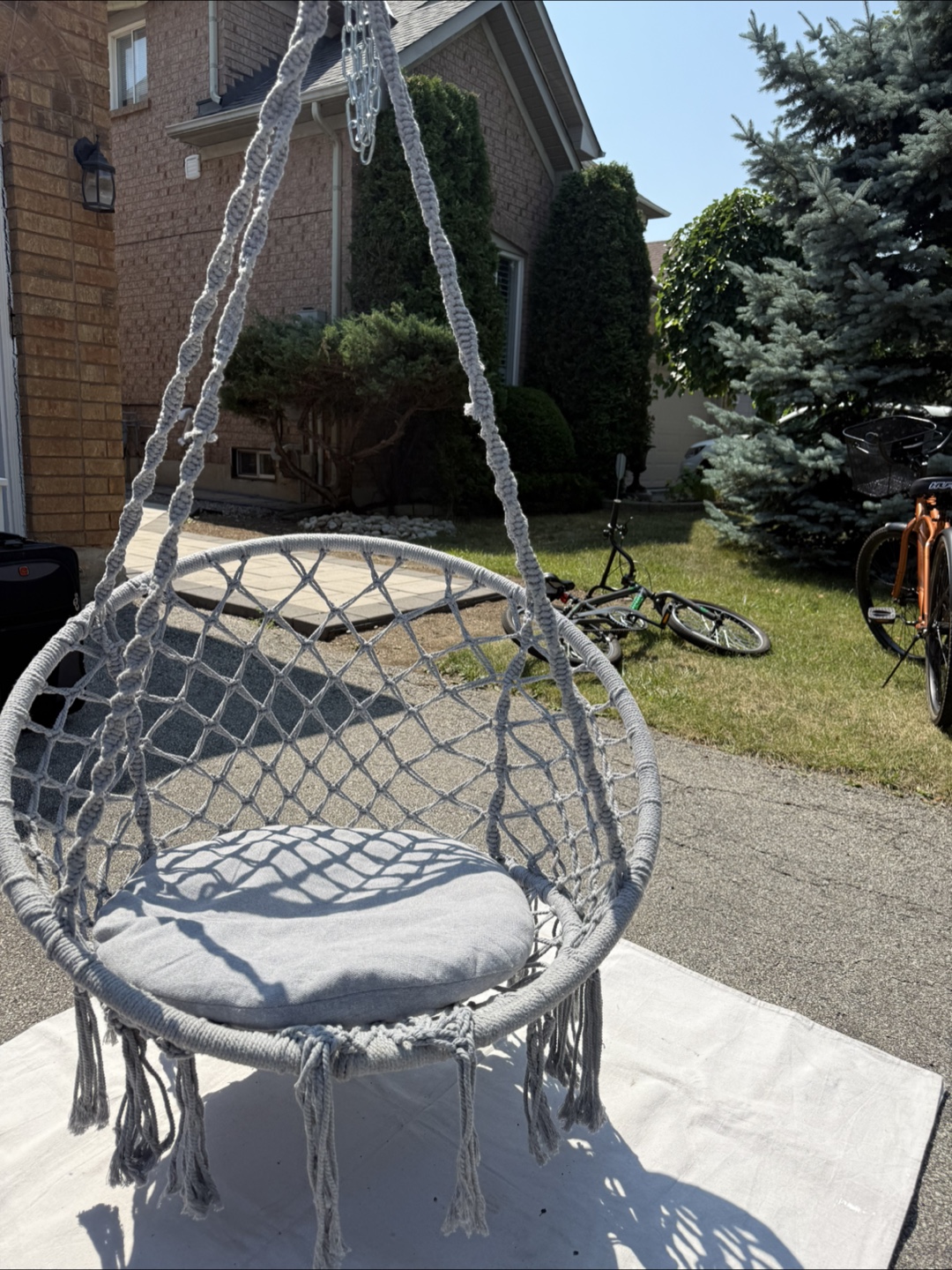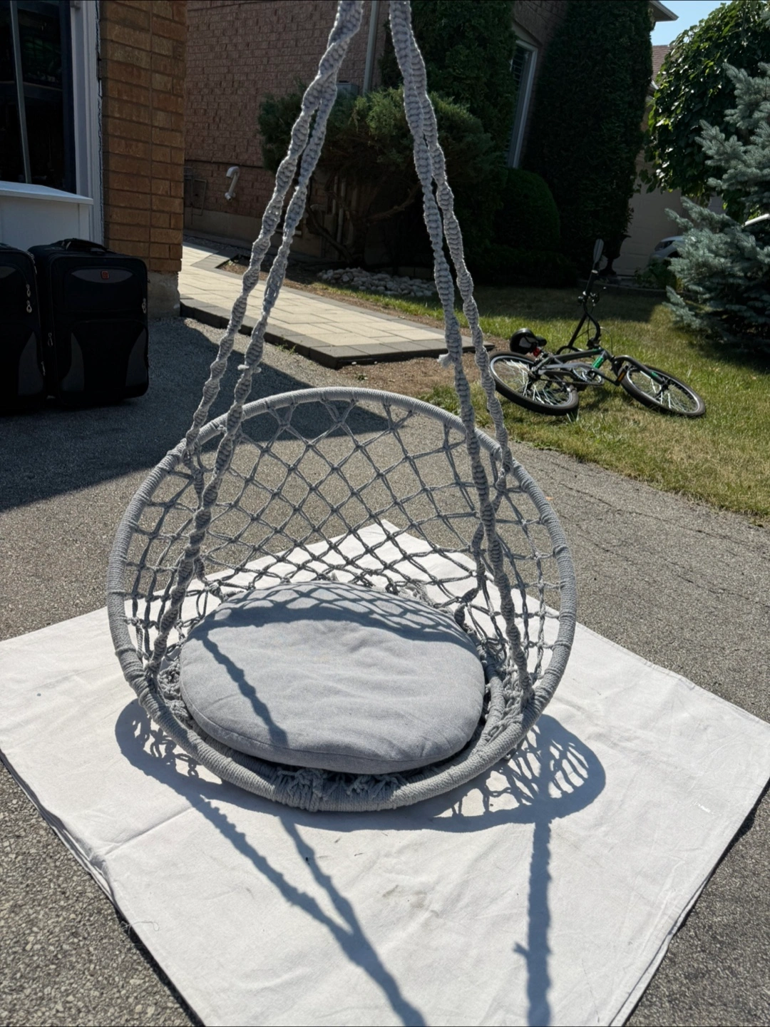 Selling a gently used Bungalow Rose Jeileen 1-Person Chair Hammock in grey. It's in great shape and ready to add a cozy touch to your space. This hammock chair is perfect for relaxing indoors or outdoors. Originally bought for $143.99!