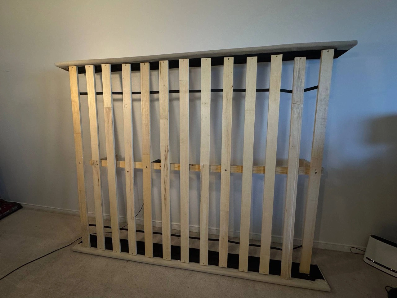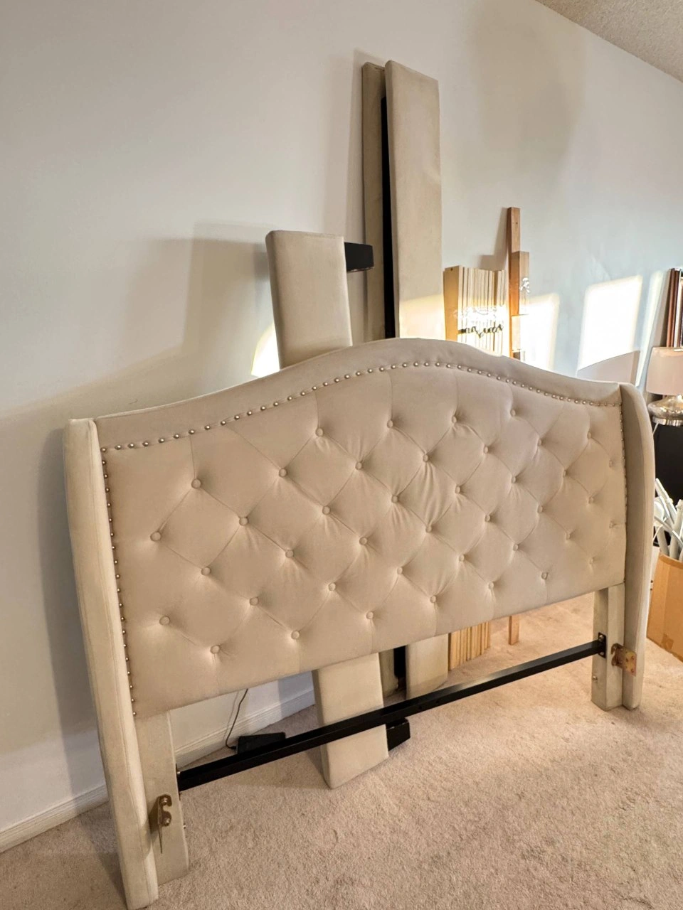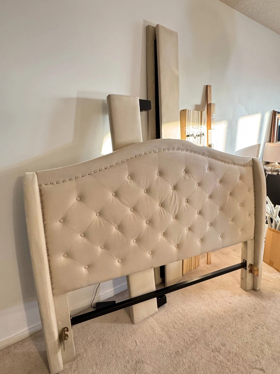 316Selling a queen-size bed frame including upholstered headboard and other parts in a lovely neutral colour. It features is in great condition. Perfect for adding a touch of elegance to your bedroom! pink up near Yonge and Sheppard