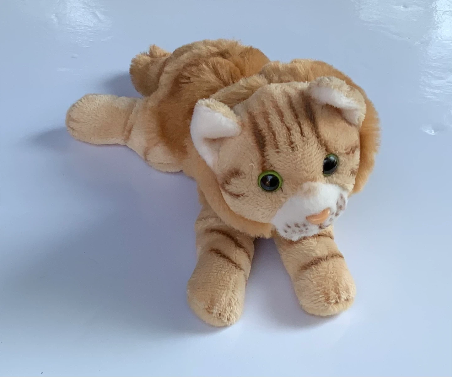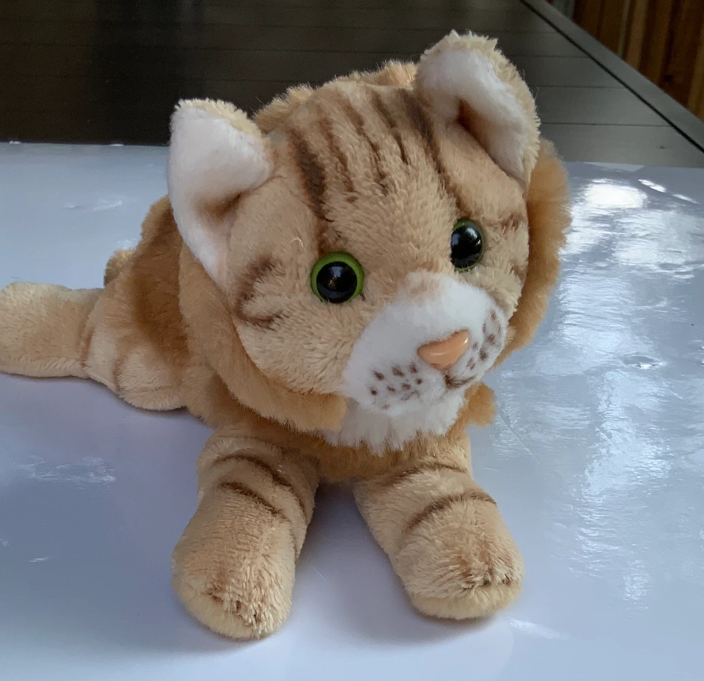 A cute and cuddly orange tabby cat plush toy! This little guy is looking for a new home and is in great condition. Perfect for kids or collectors, it's sure to bring a smile to anyone's face 9 inches in length