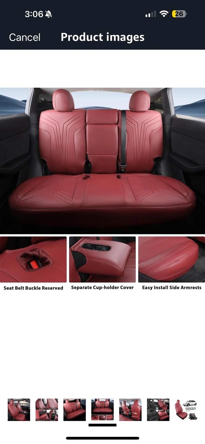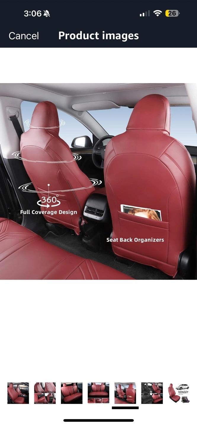 Brand new in the packaging wine red Tesla model Y seat covers 2020, 2021, 2022, 2023, 2024 covers for all 5 seats and accessories.