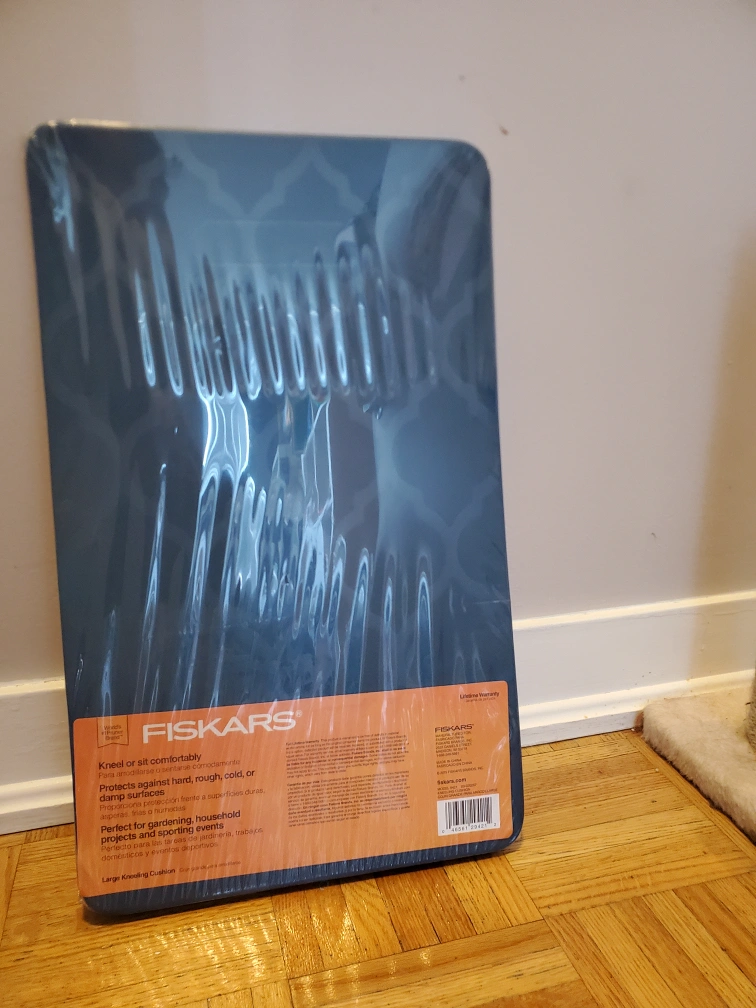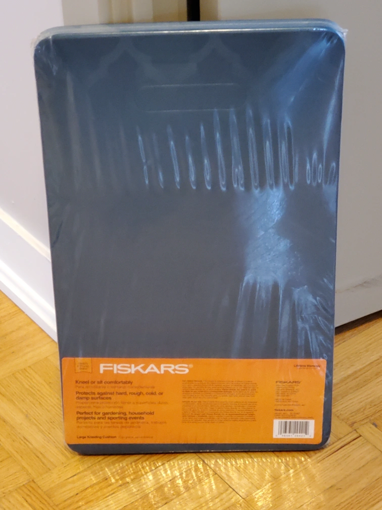 New Fiskars Large Kneeling Cushion for sale! It's perfect for gardening, household projects, and sporting events. It protects against hard, rough, cold, or damp surfaces, so you can kneel or sit comfortably. It is still in its original packaging.