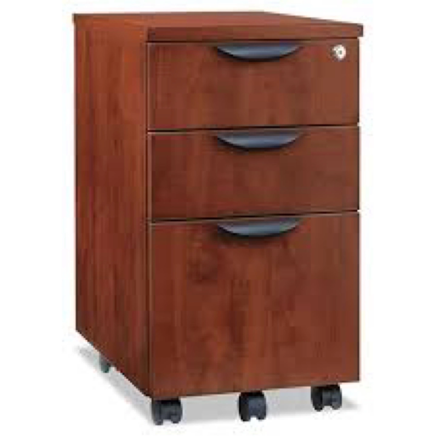 33Here's a wooden rolling file cabinet! It features two drawers and is in good condition. Great for keeping your documents organized in your home office or workspace
