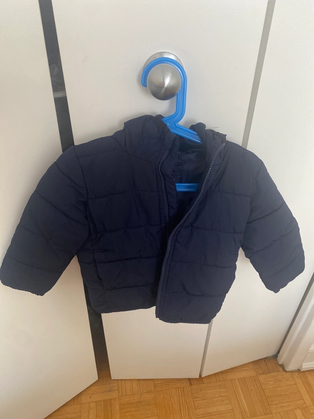 A super cute navy puffer jacket from The Children's Place! It's in great condition and perfect for keeping your little one warm on chilly days. The jacket is lightweight and easy to move around in, making it ideal for active kids. It features a hood for extra protection against the elements and a full zip closure for easy on and off. The material is soft and comfortable, ensuring your child stays cozy all day long!