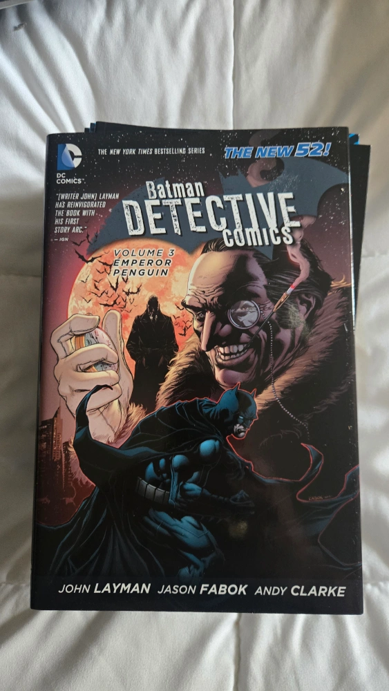 The Dark Knight Return The Dark Knight Strikes Back Batman Rebirth Vol. 9 The Tyrant Wing New 52 Detective Comics Vol 1 Faces Of Death (slip cover missing) Vol 2 Scare Tactics Vol 3 Emperor Penguin Detective Comics Rebirth Vol 3 League Of Shadows Vol 4 Deus Ex Machina Vol 6 Fall Of The Batmen Vol 7 Batmen Eternal $10 each or $90 for the lot