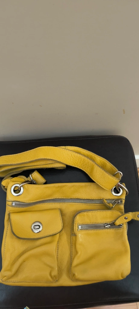 Selling a Roots crossbody bag in yellow leather! It's in great condition and has lots of pockets. Perfect for everyday use or travel.. Has 3 outside pockets.