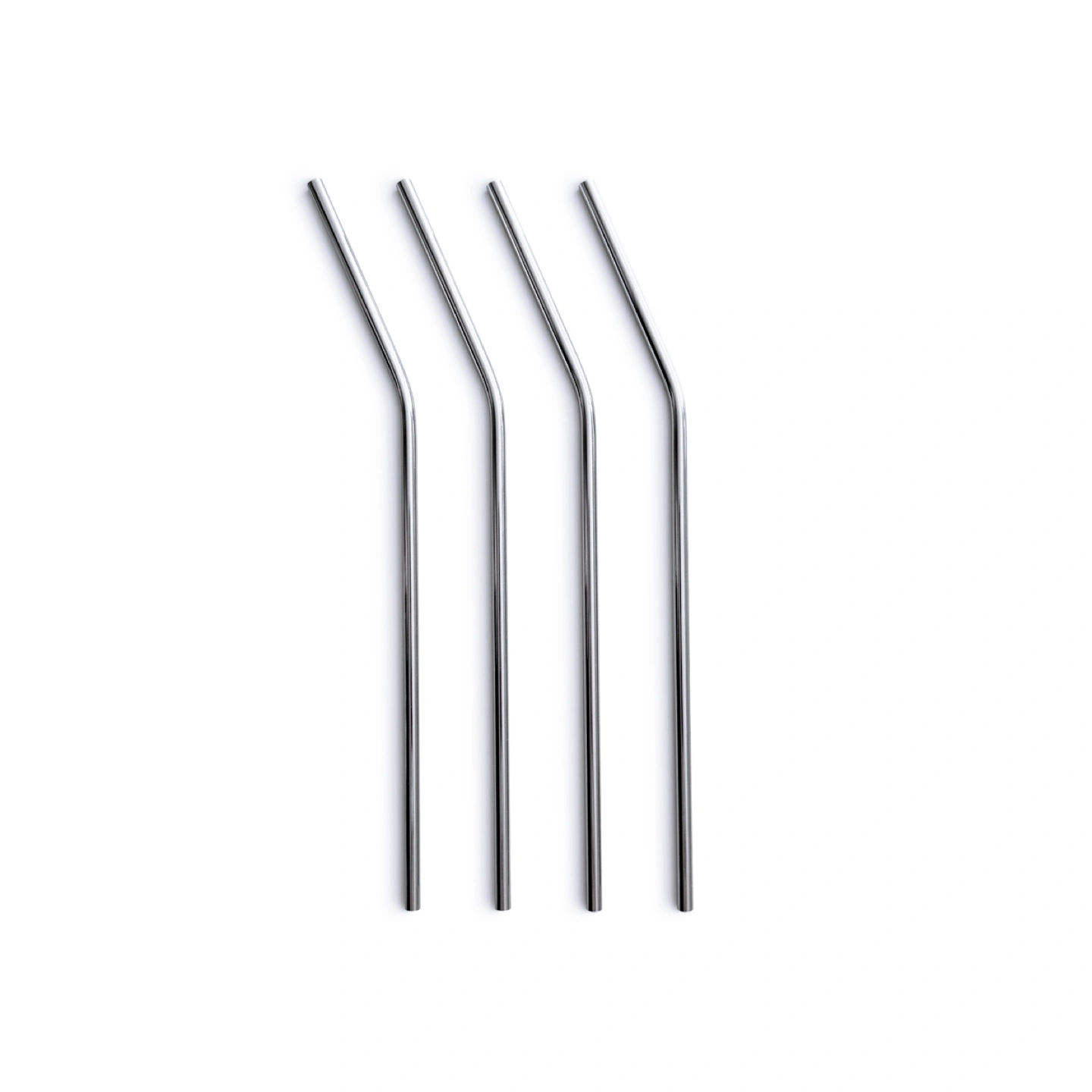 This set of 4 sleek reusable straws in stainless steel keeps the chill on for enjoying everyday beverages and sipping cocktails. The gleaming silver metal adds modern, industrial style to casual and carefully crafted drinks. Discontinued product, no longer sold at Crate & Barrel stores.
