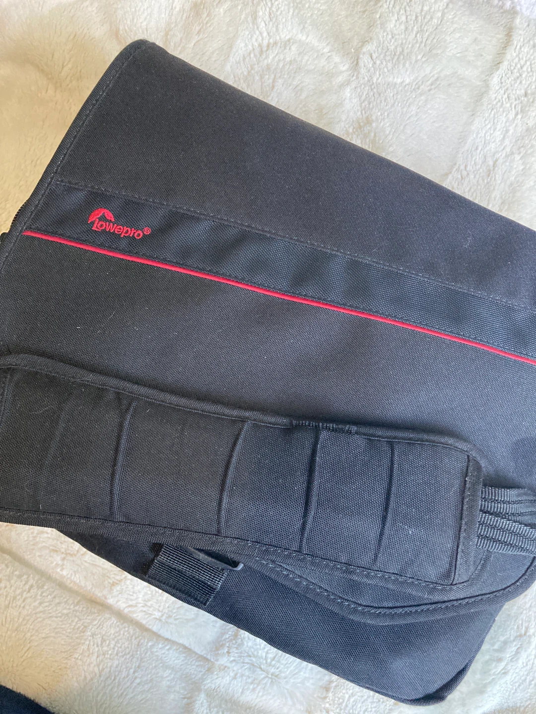 Selling a Lowepro Event Messenger 250 camera bag. It's black and has adjustable padded dividers inside to customize the space for your camera and accessories. Great for keeping your gear organized and protected!