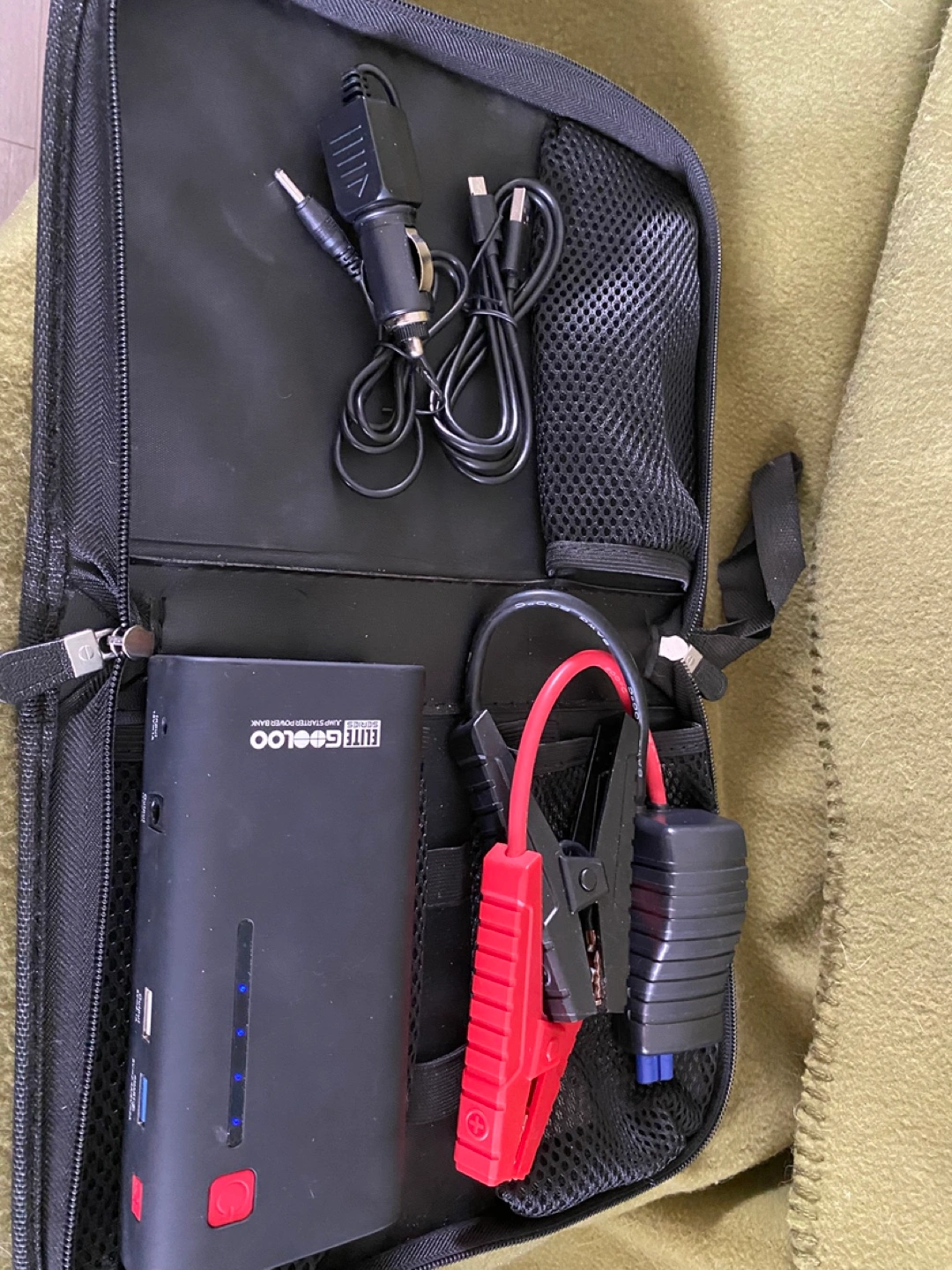 Selling a Gooloo jump starter power bank. It comes with the case and all the accessories shown in the photos. Great for ensuring you're never stranded with a dead battery!