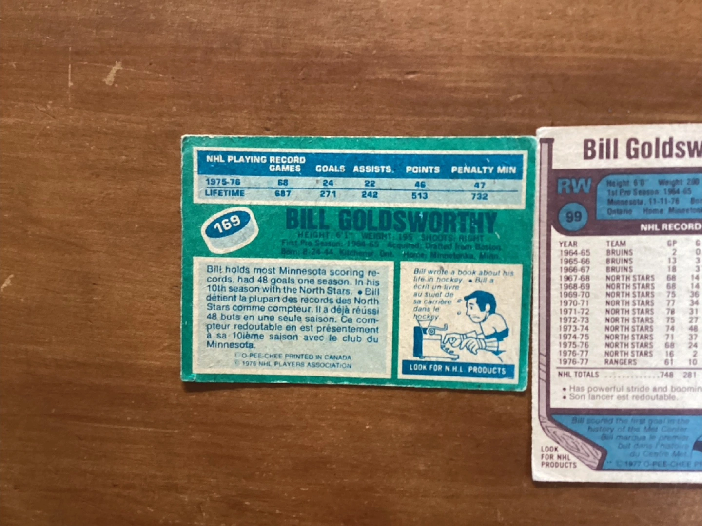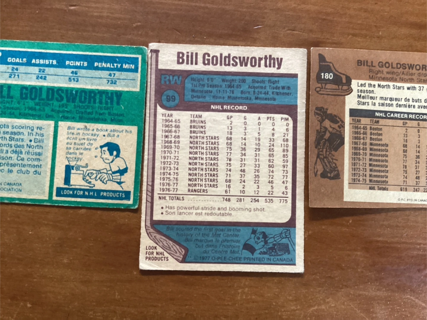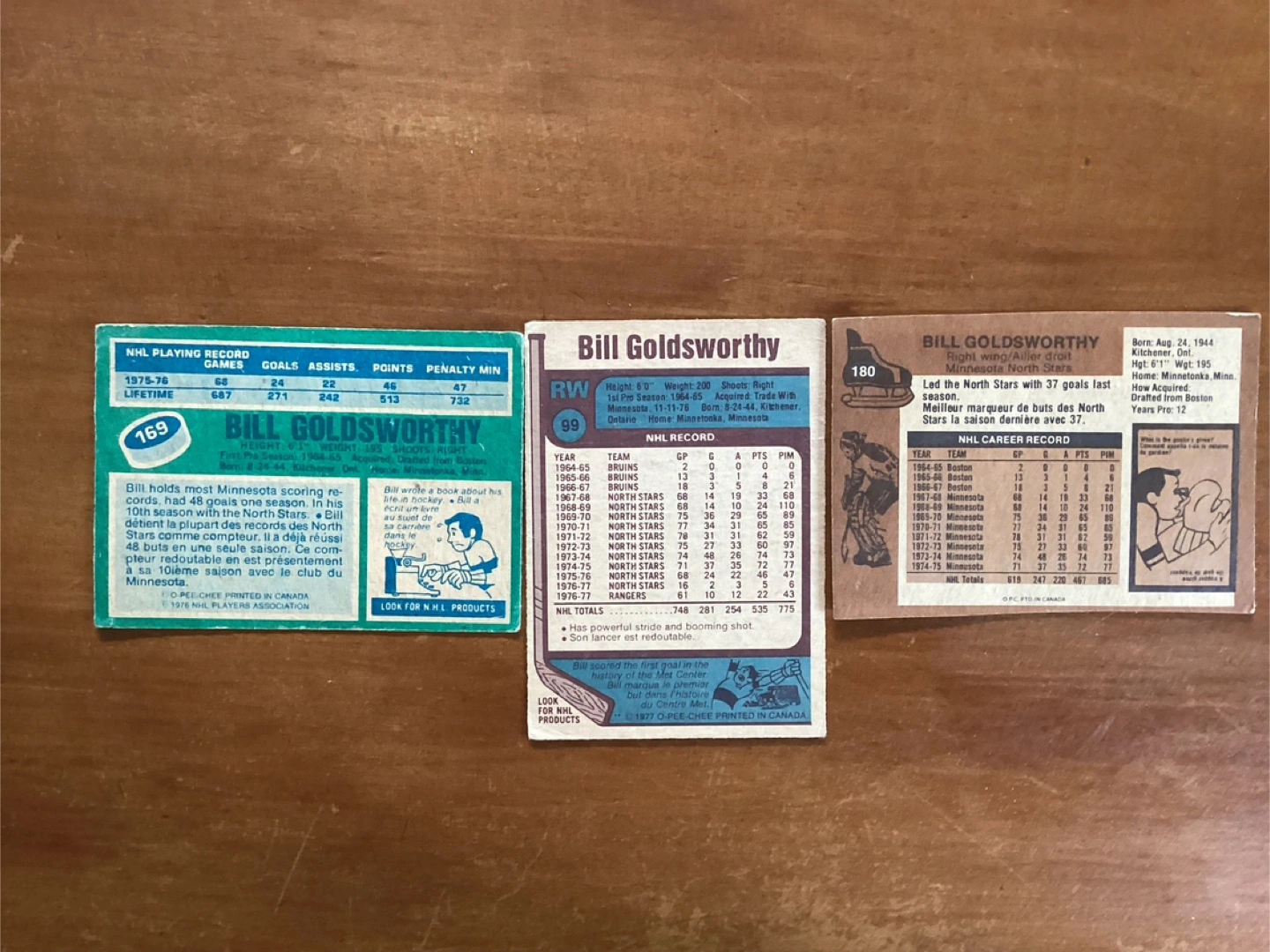 3 BILL GOLDSWORTHY NHL Cards %’s 99, 169 & 180