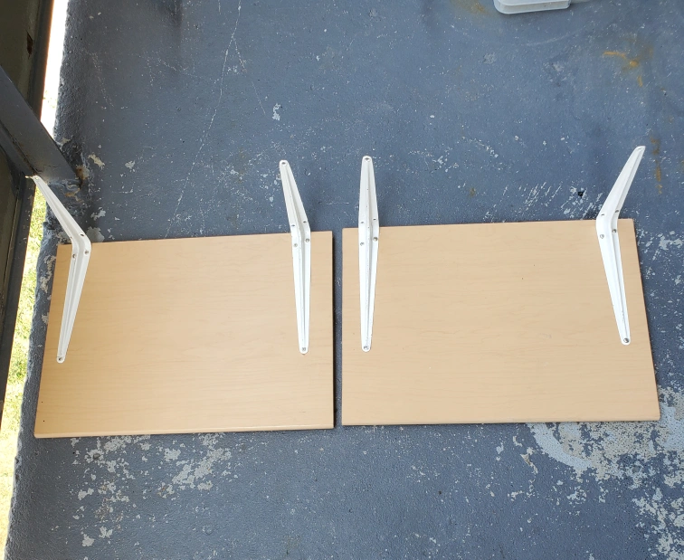 52Selling two shelves, each with a white bracket attached. The shelves are approximately 21 inches long and 10 inches wide. Perfect for adding some extra storage! very good condition only cash price firm no delivery. both $20 only cash. I have and app Facebook and app Kijjijji. Location Cawthra and Lakeshore Mississauga.