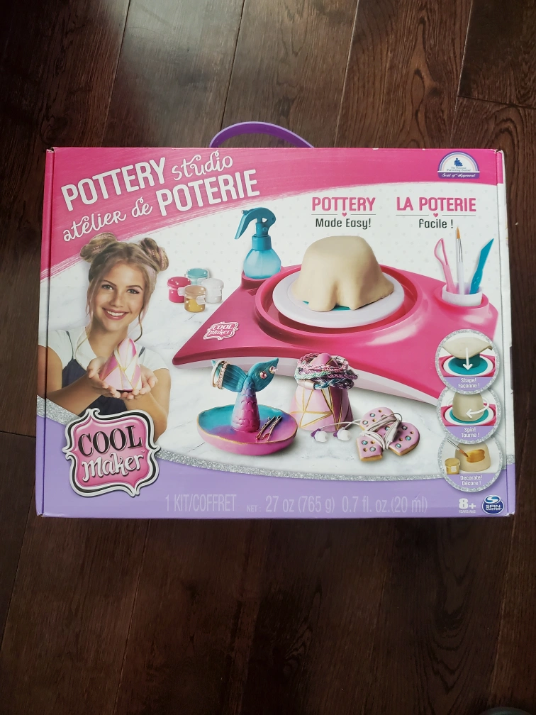 Selling a brand new Cool Maker Pottery Studio set! This pottery studio makes creating with clay easy and fun. It's a unique way to design and customize your own creations. The set includes air-dry clay disks and a spray bottle for shaping. Recommended for ages 8+