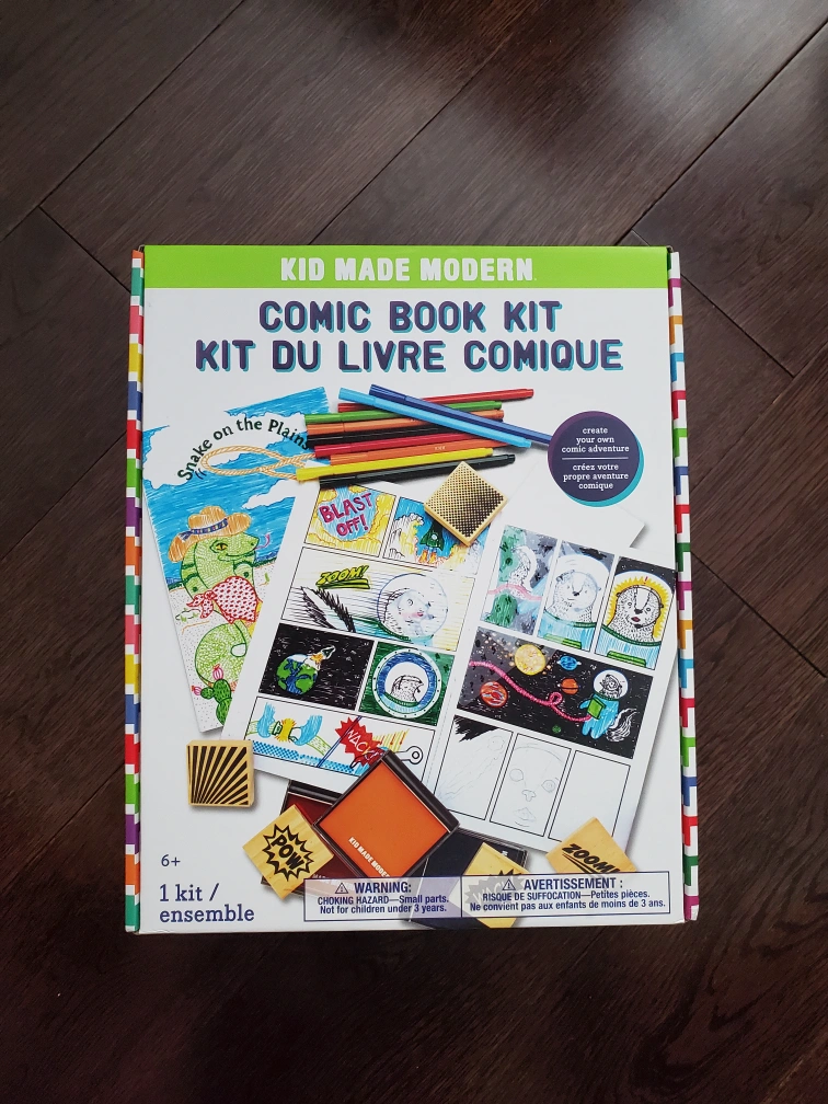 I'm selling a brand new Kid Made Modern Comic Book Kit! It's still in its original packaging and ready for a young artist to create their own comic adventures. The kit includes everything needed to get started, such as: