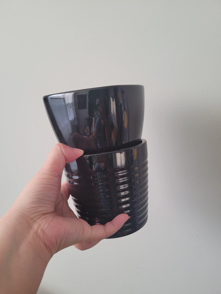 Four used plant pots, one of the black ones is slightly chipped but everything is perfectly functional!