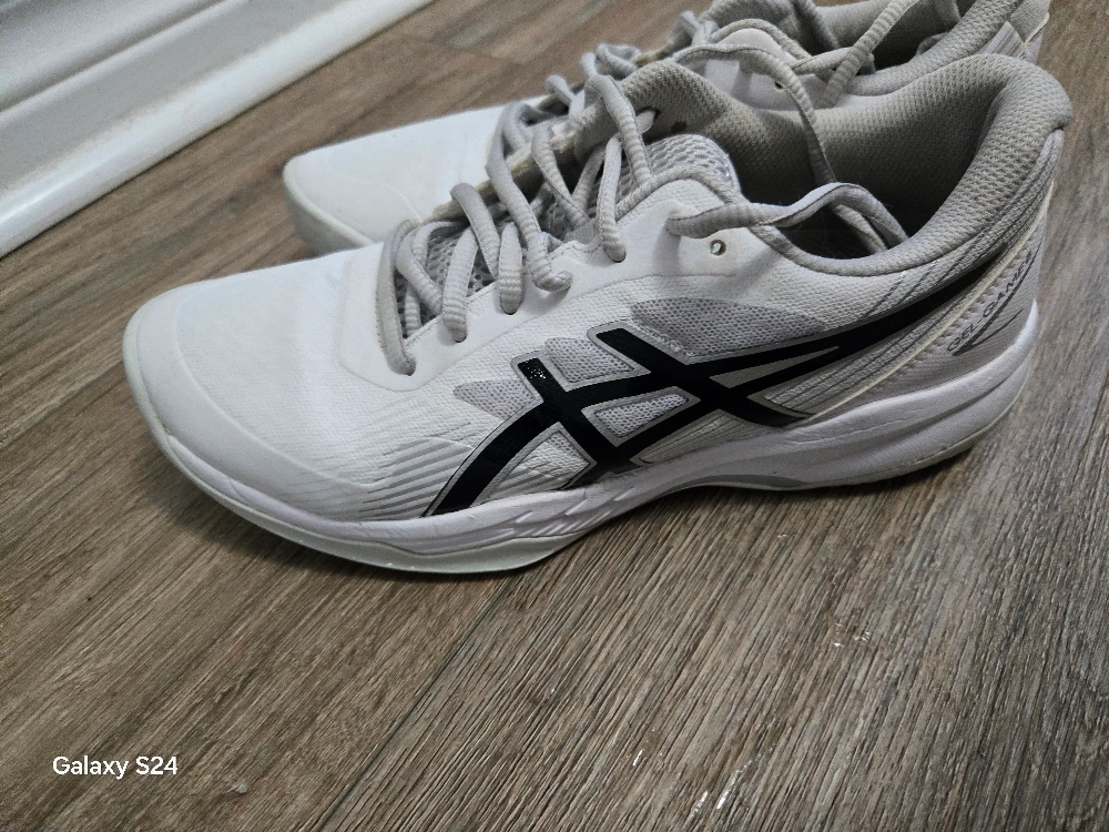 Selling a pair of Asics Gel-Game 8 tennis shoes in white. They are in good condition and ready for the court! Size is US 8.