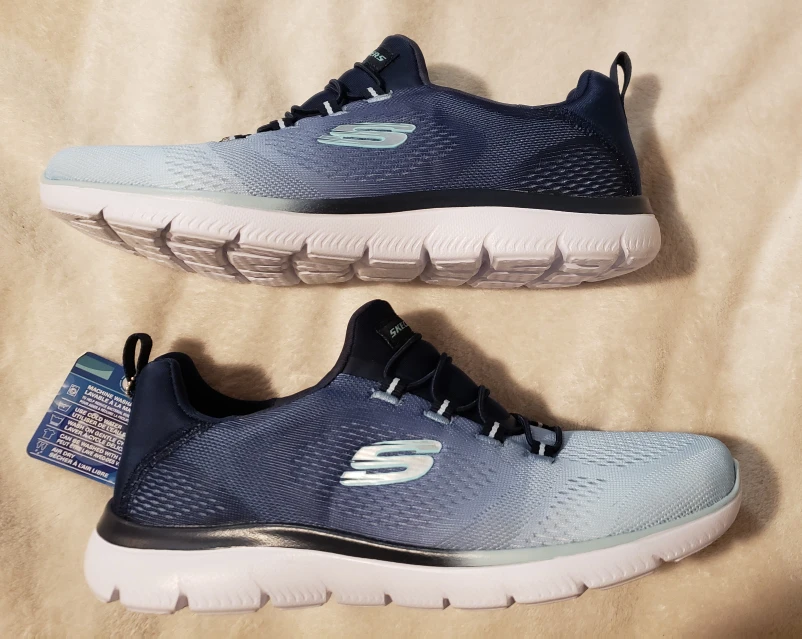 Selling a pair of brand new Skechers Summits for women! These are a lovely gradient of light and dark blue. They feature a memory foam insole for extra comfort. Great for everyday wear or light workouts. size 7.5