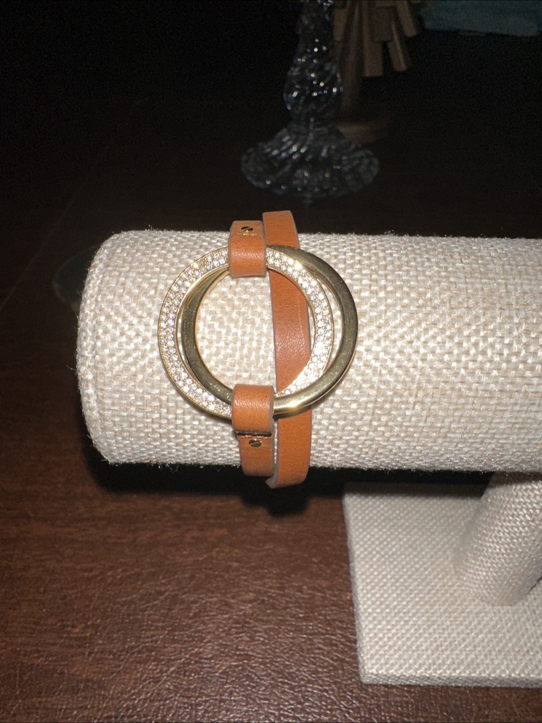 Selling a stylish Michael Kors wrap bracelet. It features a brown leather band and gold-tone hardware. Perfect for adding a touch of elegance to any outfit!