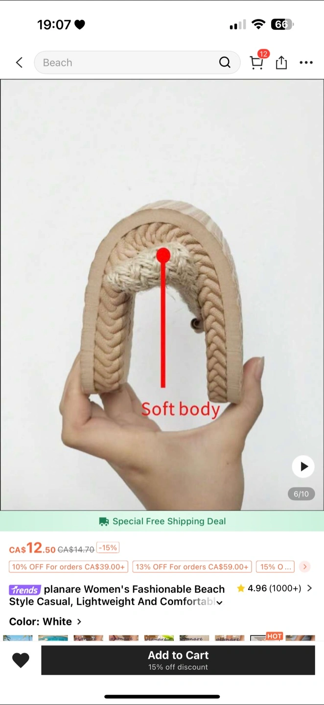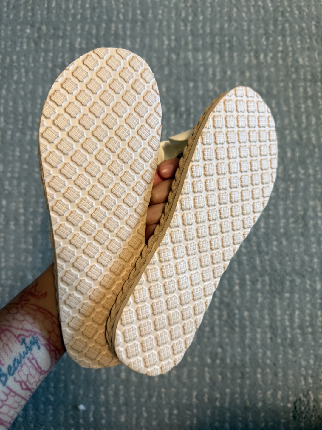 These Planare women's fashionable beach sandals are perfect for a casual, lightweight, and comfortable style! They're in a size 6.5 and the colour is white. They feature a soft body design, making them extra comfy for everyday wear