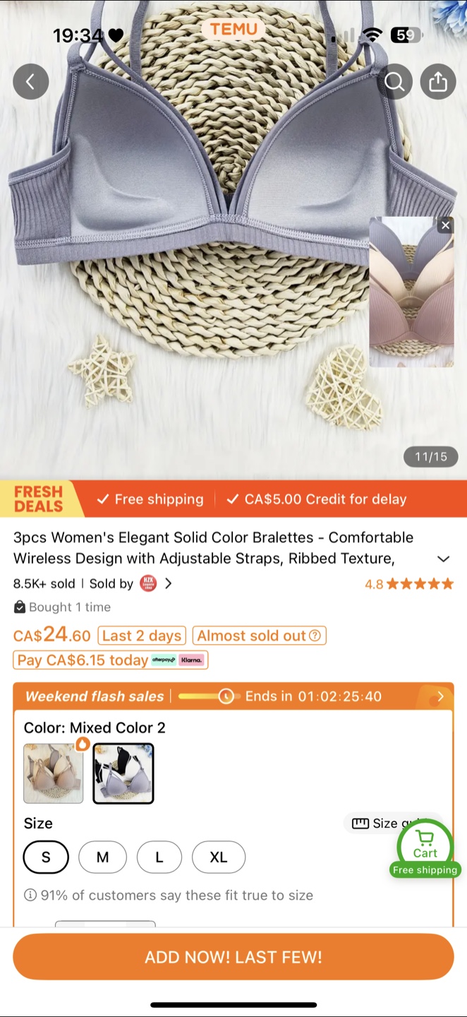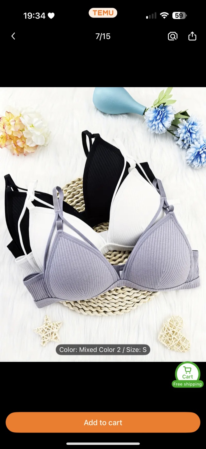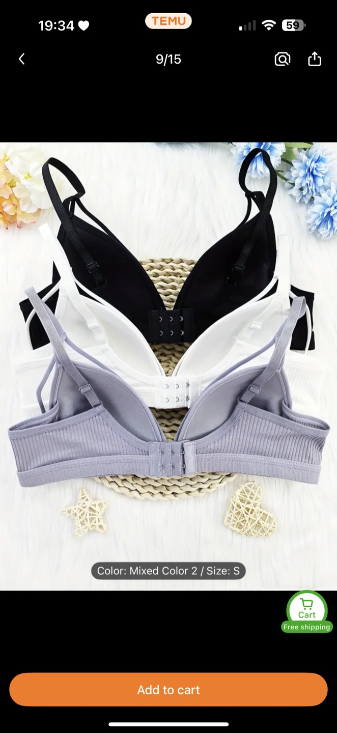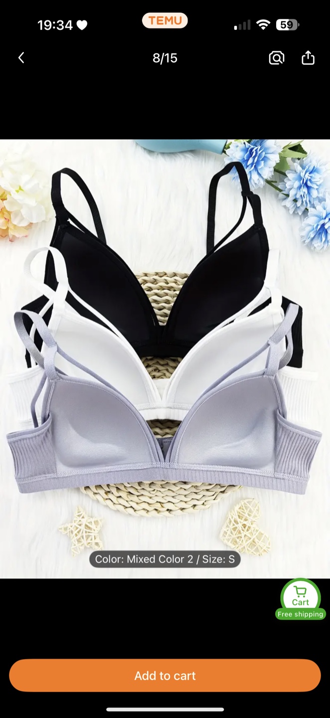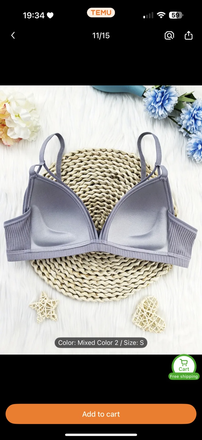 Selling a bra from Temu in a mixed colour 2, size S. It looks like it's in great condition!