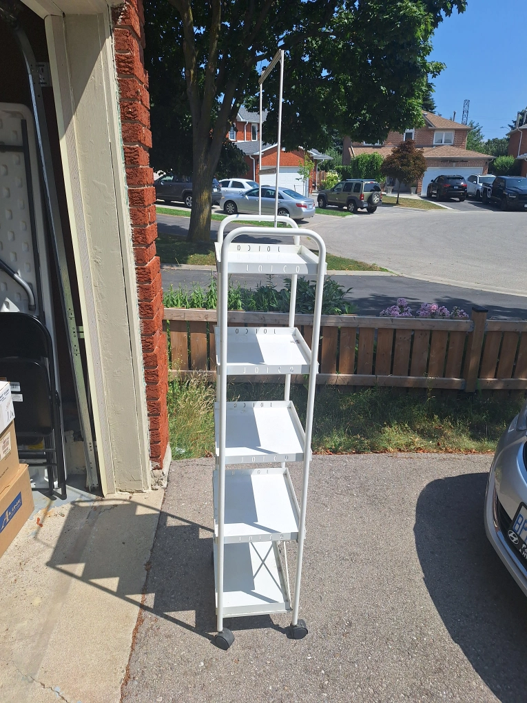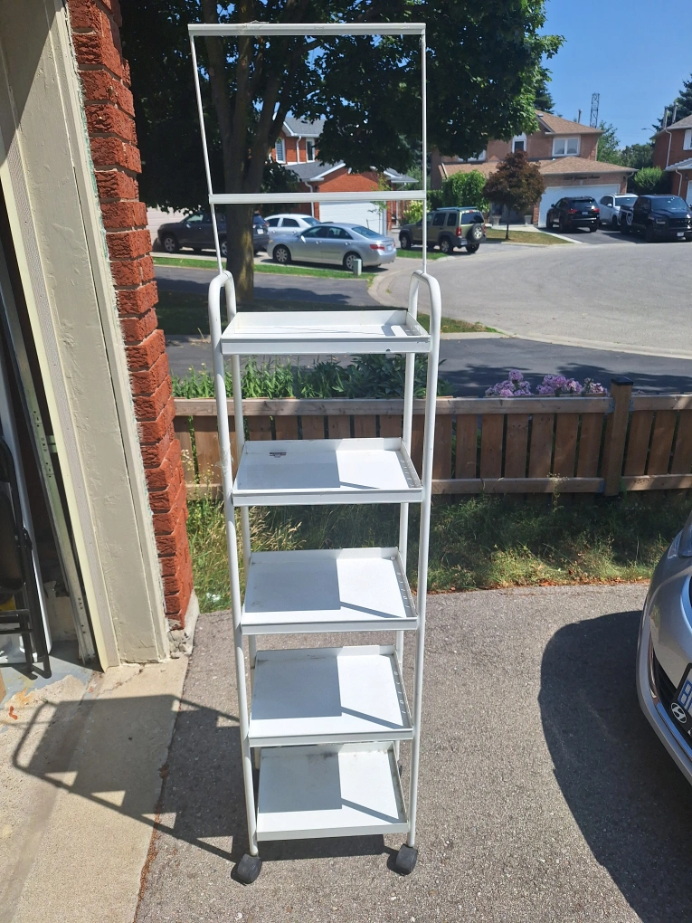 Top part of unit for event/item post is 16" x 11" The unit has 5 shelves. Each shelve is 12" x 15" The overall height of the unit is 54" Available for pickup in Mississauga at the intersection of Bud Gregory and Gatineau Ave. Cash only