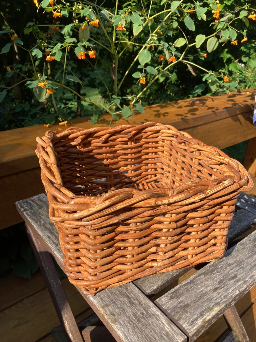 A lovely wicker basket! It's in great shape and perfect for storage or decor. The woven texture adds a warm, natural touch to any room. It's a versatile piece that can be used in many ways!