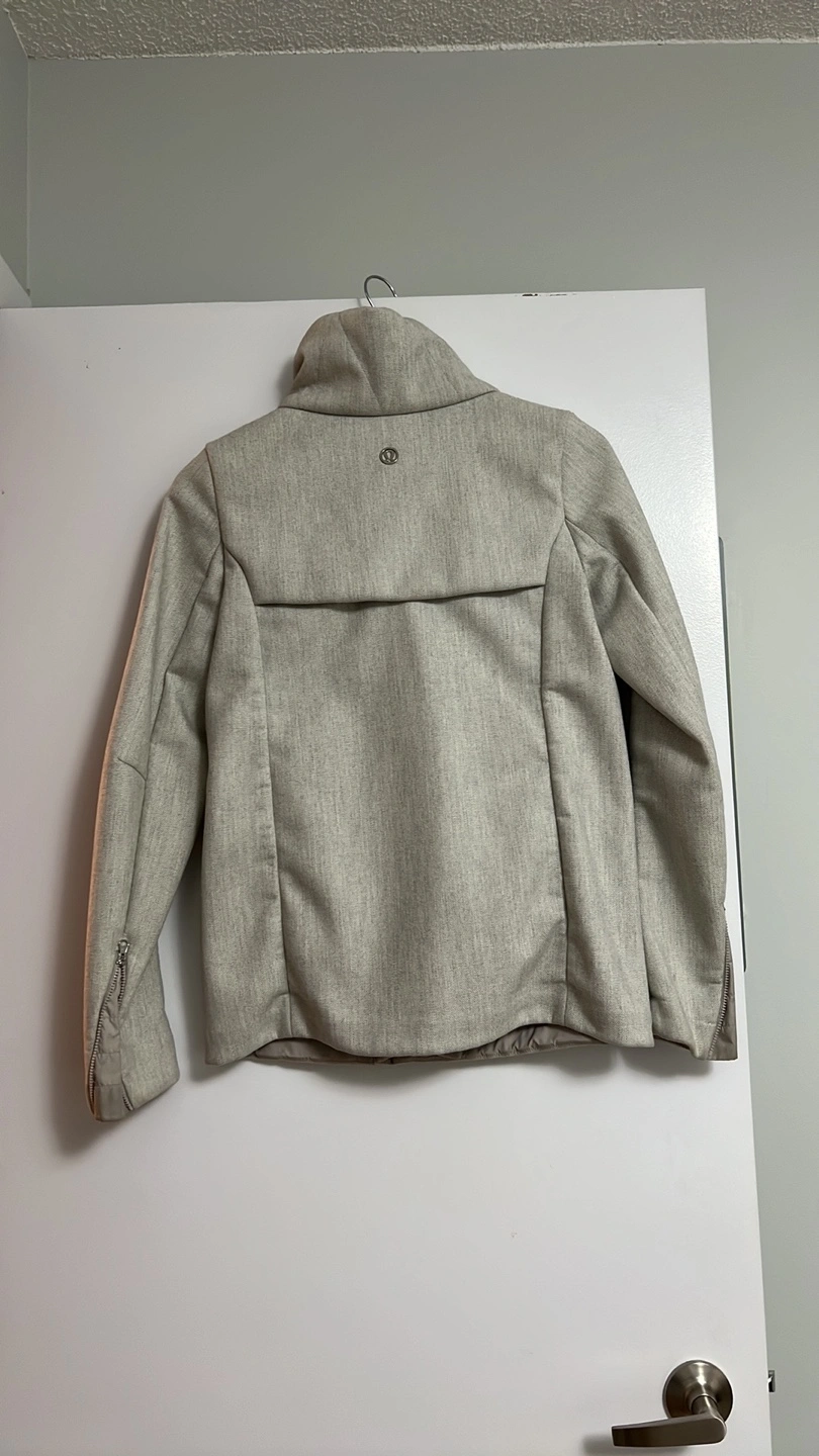 Selling a Lululemon Jacket in a beautiful beige colour, size 4. It's in good used condition and ready for a new home! The jacket is perfect for layering or wearing on its own for a stylish and comfortable look