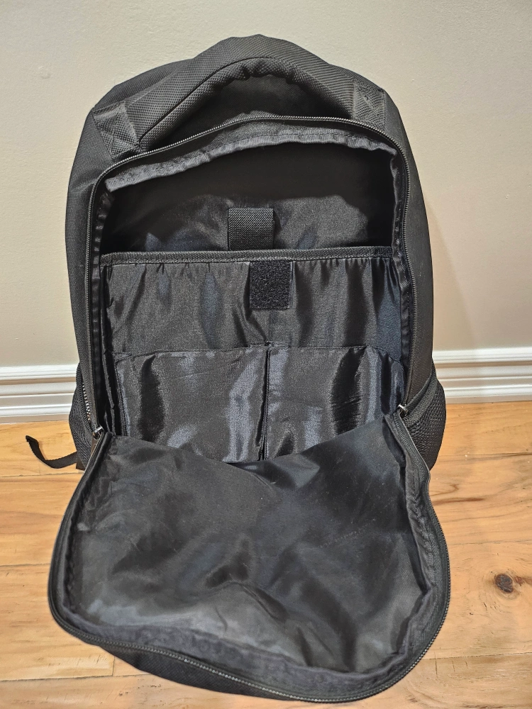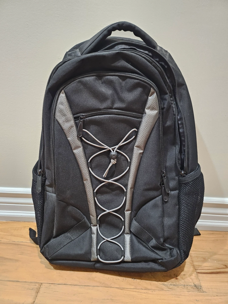 Selling a black backpack in good condition! It has a few compartments to keep your belongings organized. Perfect for school, work, or travel