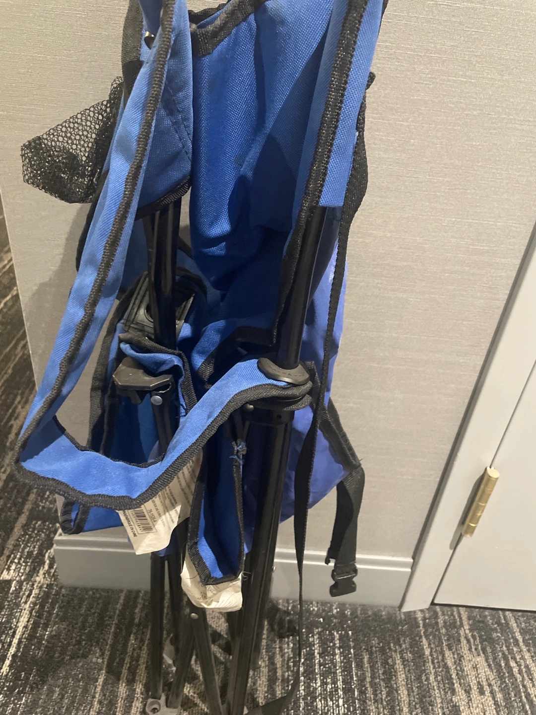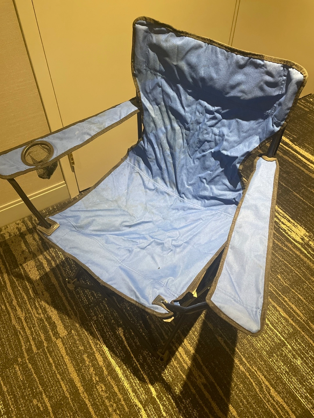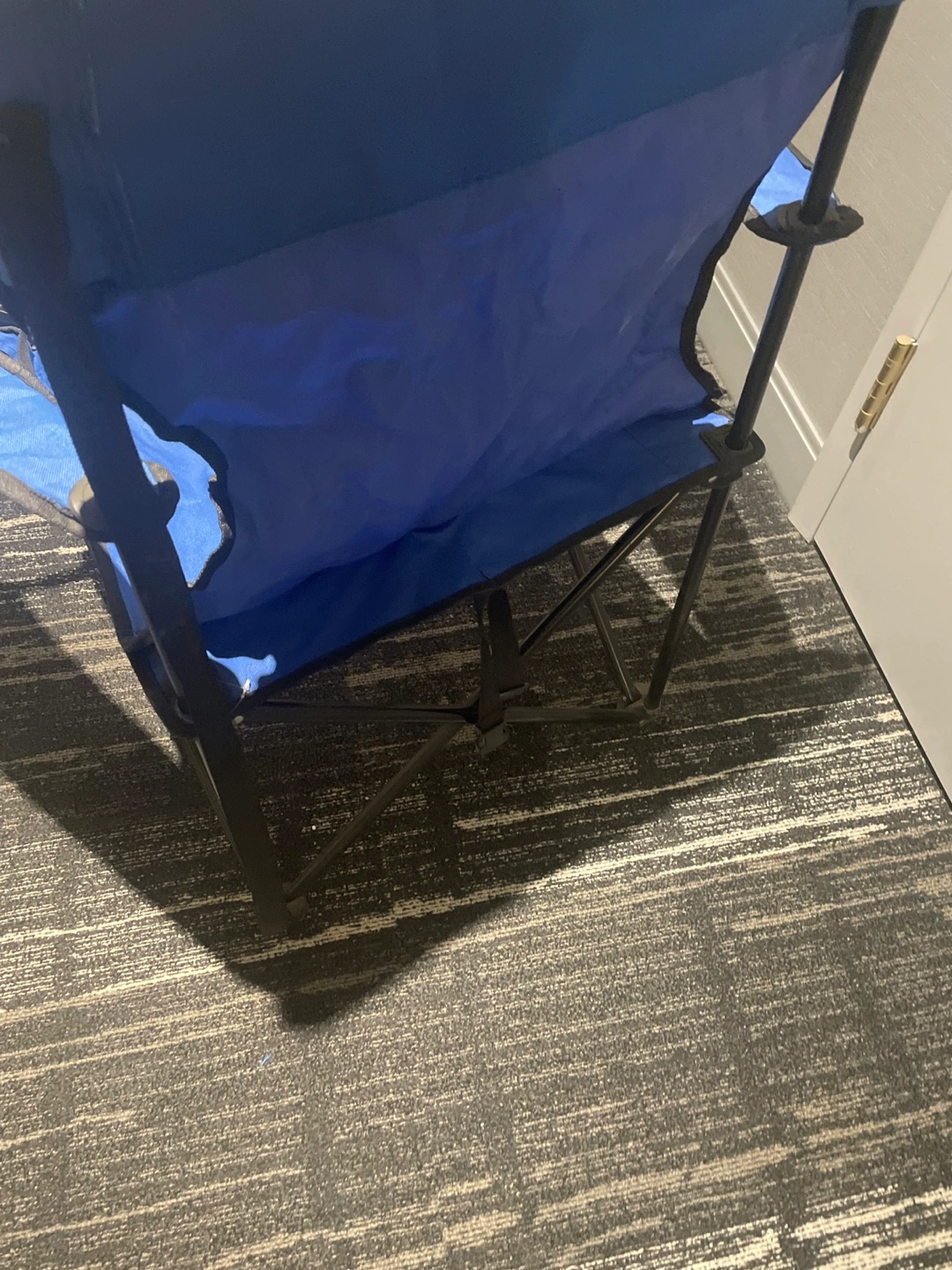 Selling a blue folding camp chair. It's lightweight and portable, perfect for camping or outdoor events. It's working condition but used.