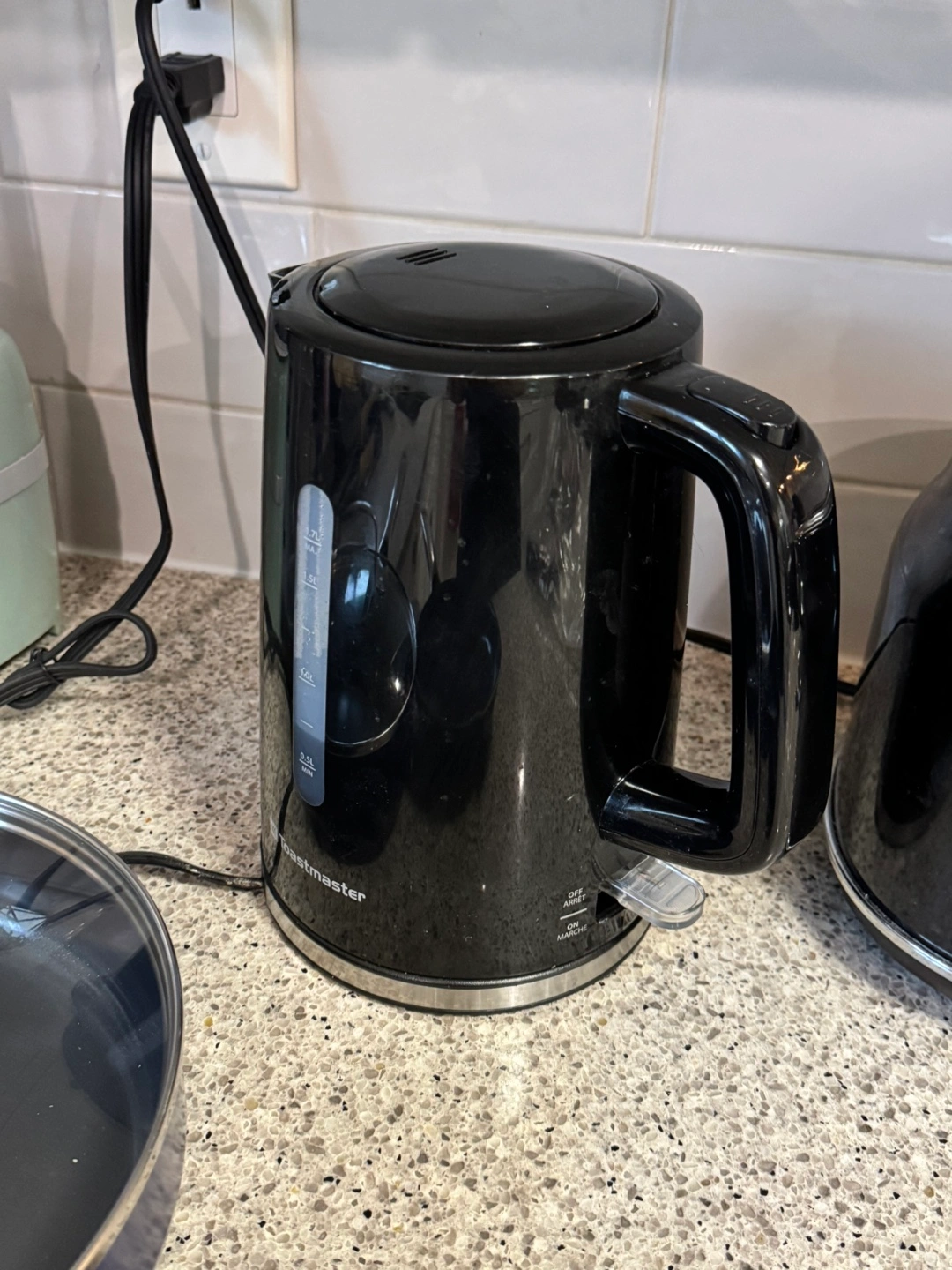 Selling a Toastmaster electric kettle in black. It's in great shape and ready to boil water for your tea or coffee! Perfect for a quick cuppa