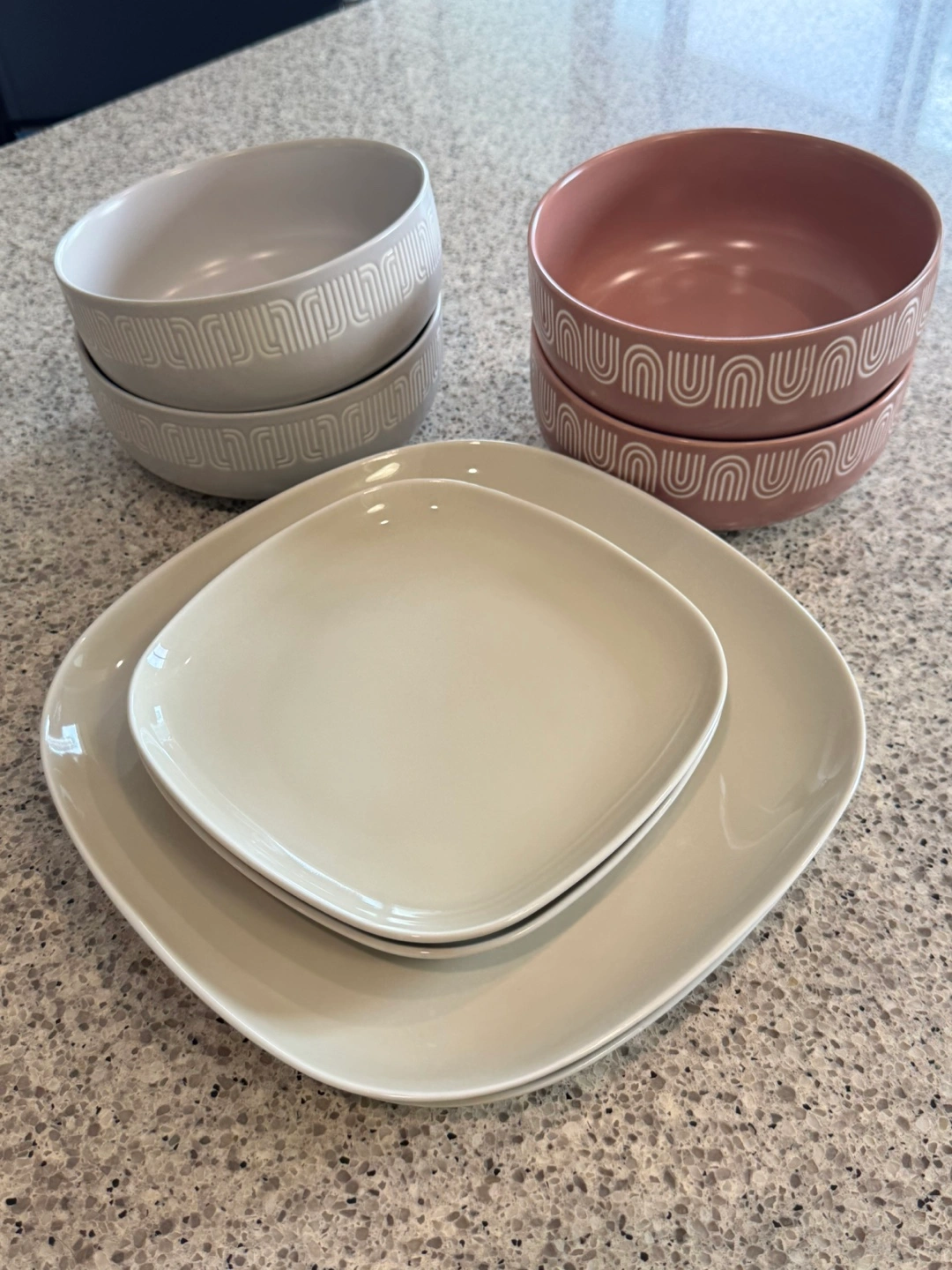 Selling a set of dishes and bowls. They're in great shape and ready for a new home! The set includes plates and bowls in neutral tones, perfect for any table setting