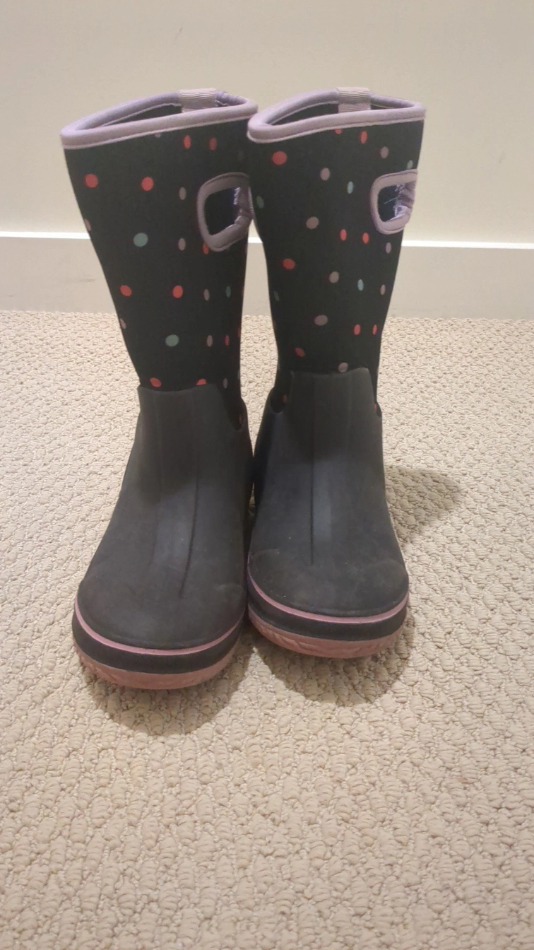 These Bogs Kids rain boots are perfect for keeping little feet dry and comfortable! They feature a fun polka dot pattern and are in great condition. Size 1 Little Kid