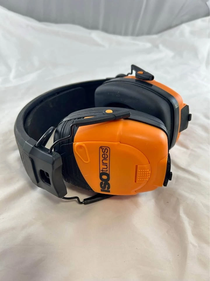 Used but in good condition. Blocks up to 25 dB, rechargeable battery up to 50 hours, IPX4 water resistant, Bluetooth 5.0. Adjustable headband fits most S-L. Doesn't come with a USB-C charging cable.