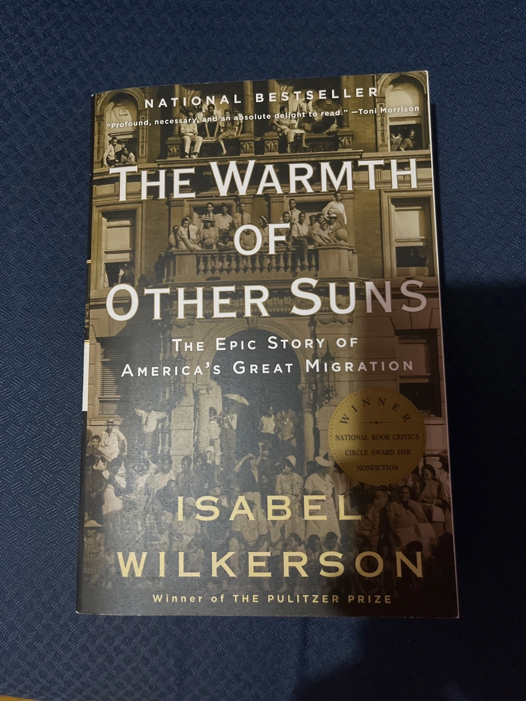 Selling "The Warmth of Other Suns" by Isabel Wilkerson. It's a National Bestseller and winner of the Pulitzer Prize. It tells the epic story of America's Great Migration. In new condition.