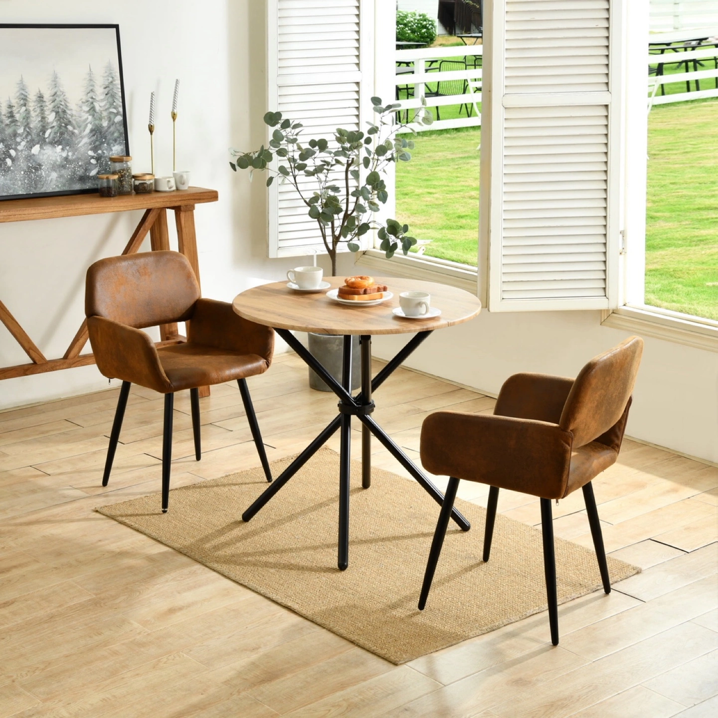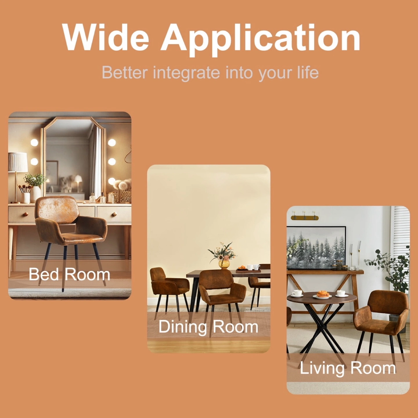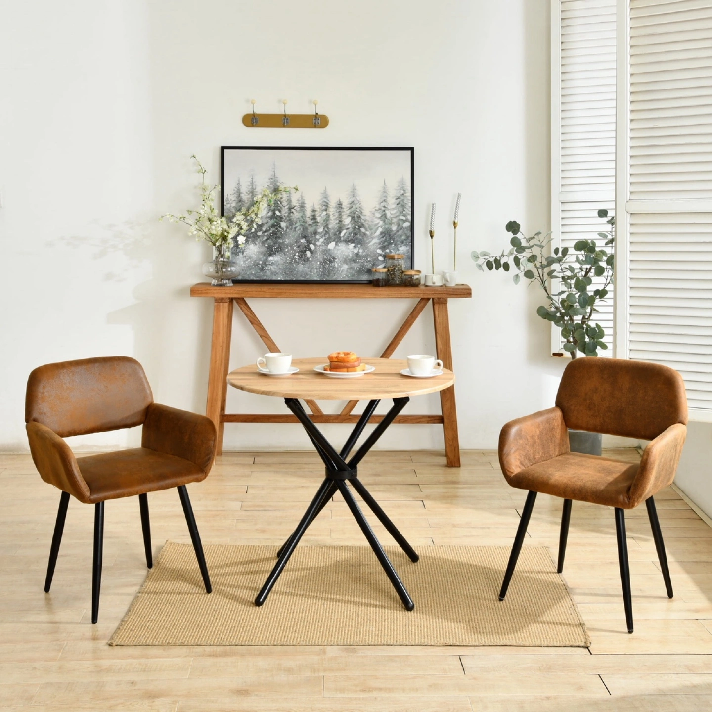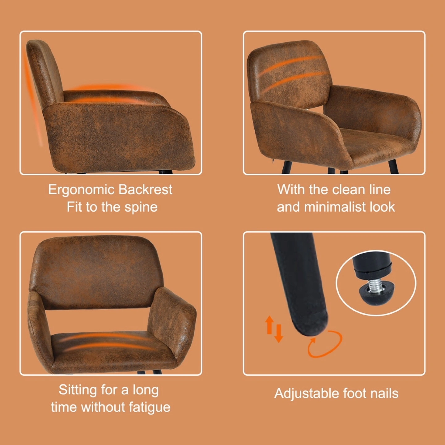 Set of 2 Dining Chairs, Modern Upholstered Chairs for Kitchen and Dining Room, Brown Faux