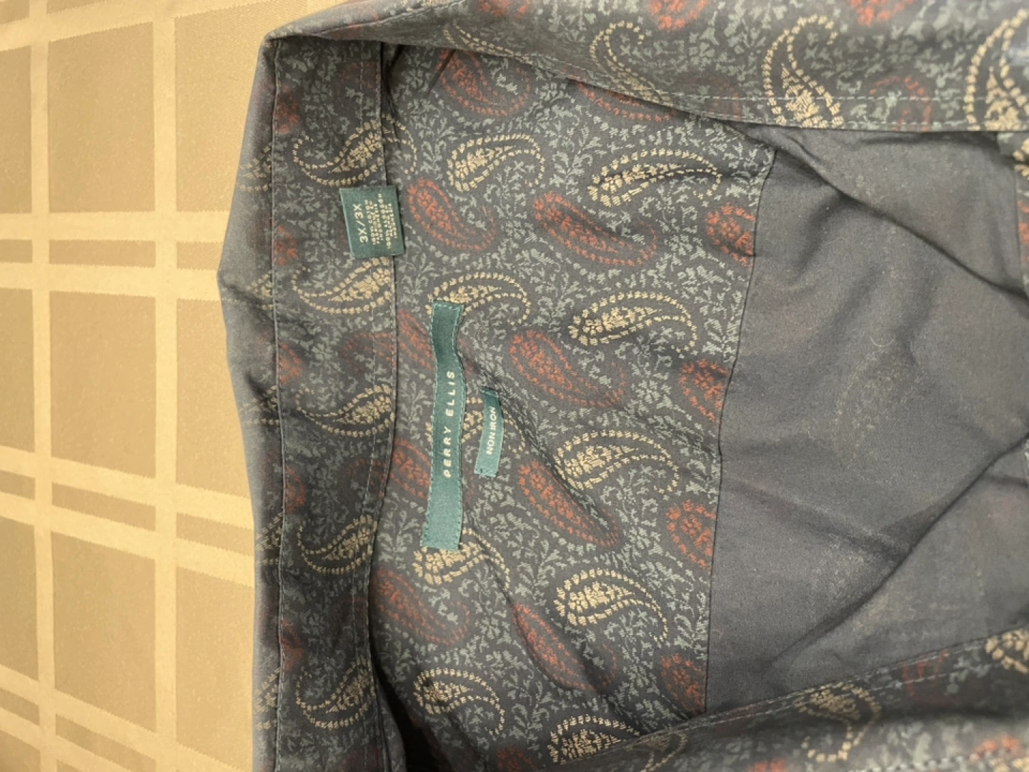 81Here's a Perry Ellis men's dress shirt in size 3X. It features a stylish paisley pattern. It's in great condition and ready for a new home!