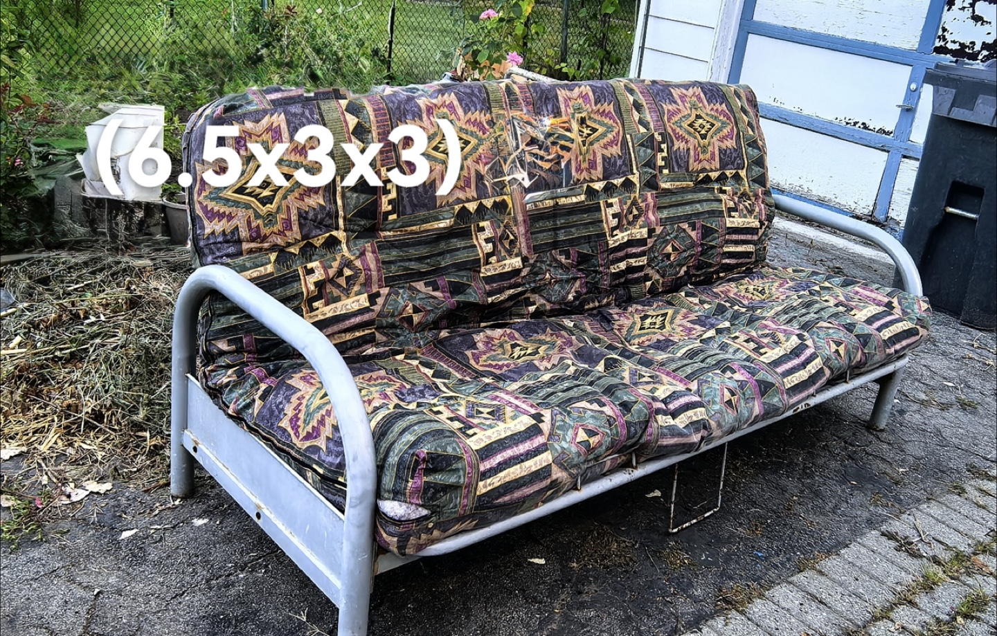 Selling an outdoor patio loveseat. It's approximately 6.5 feet long, 3 feet wide, and 3 feet tall. Perfect for relaxing on your deck or patio!