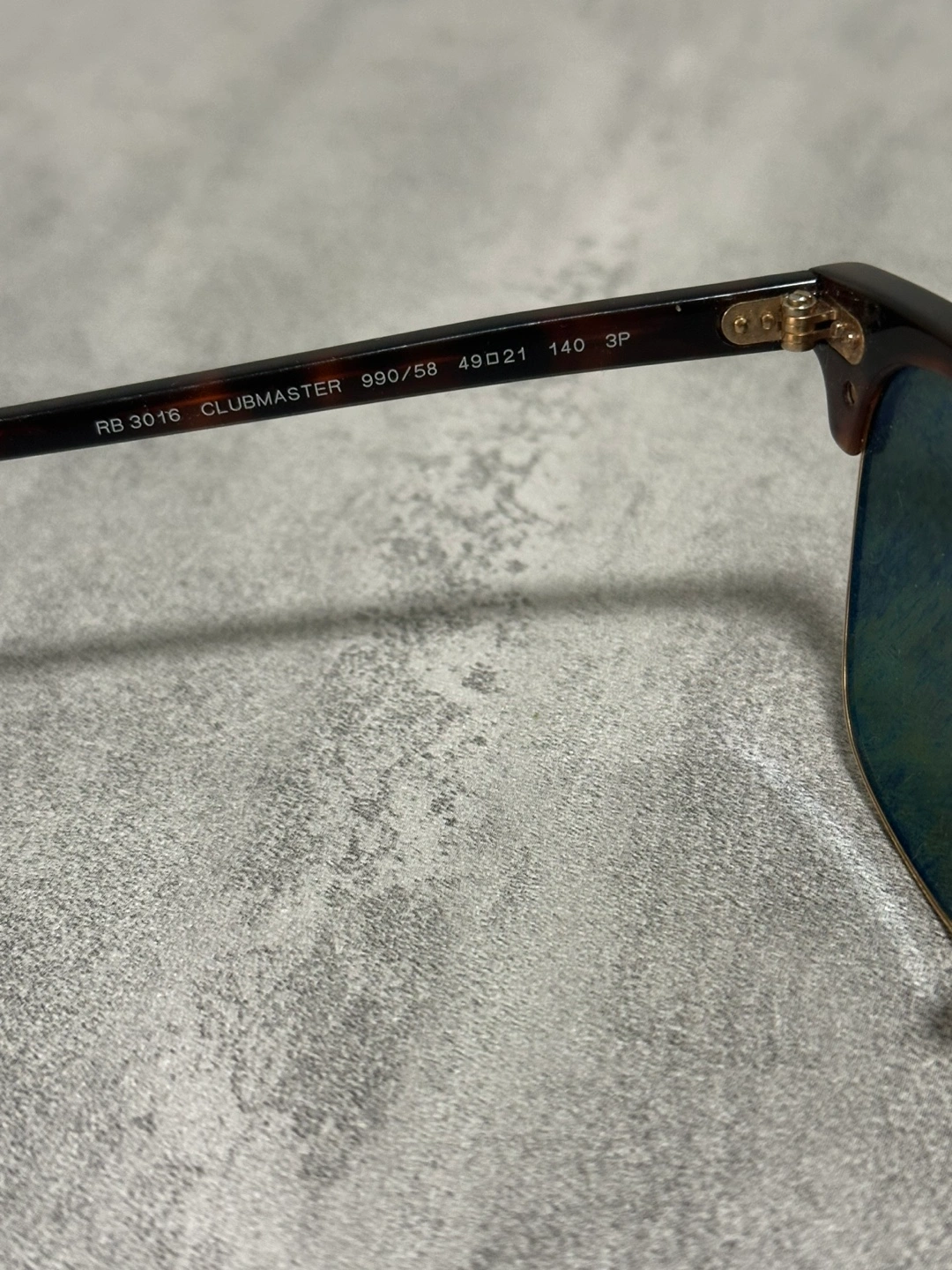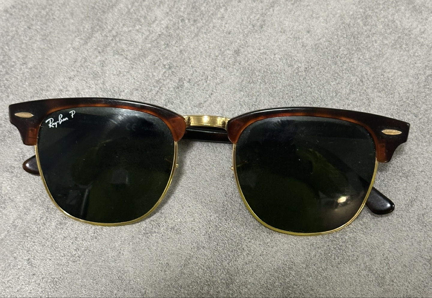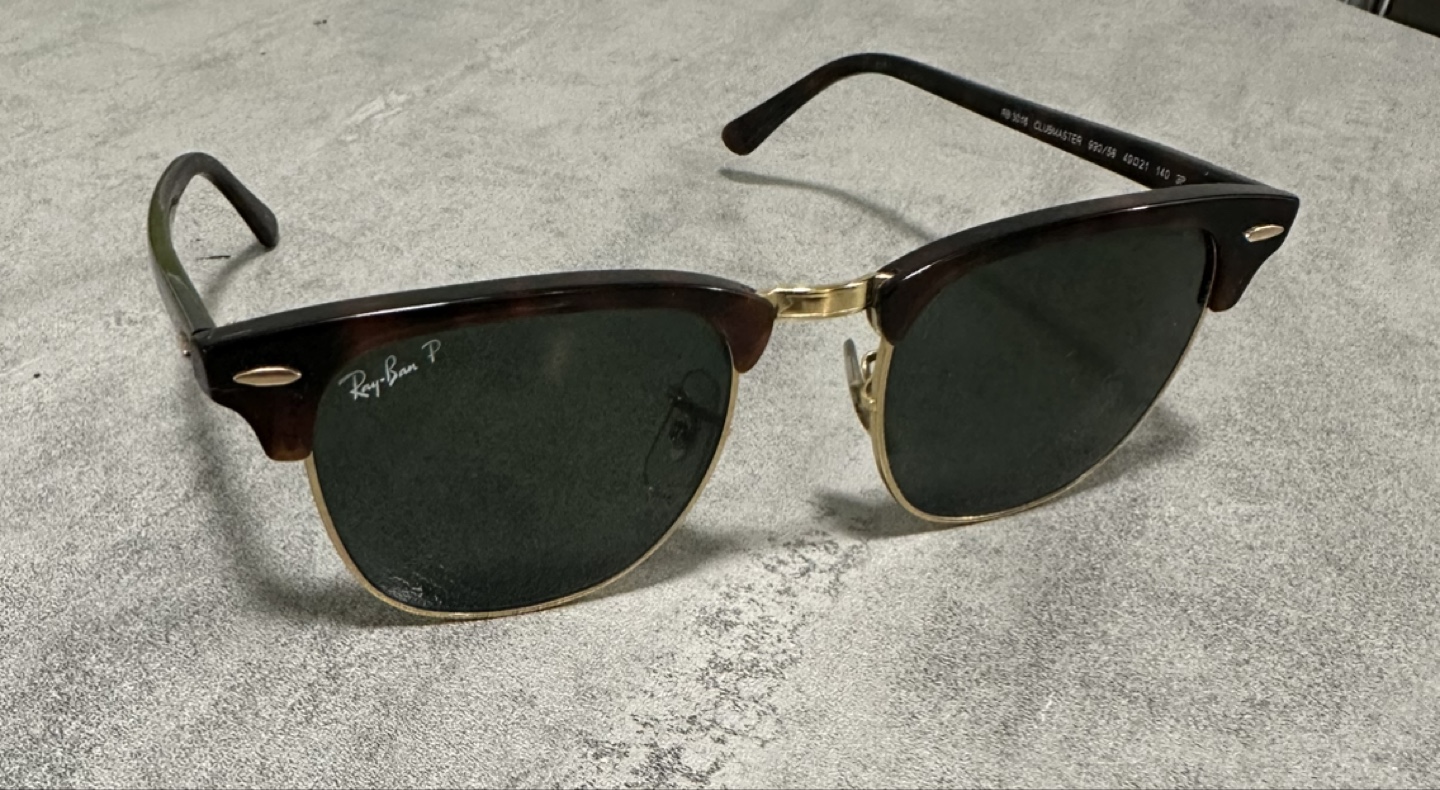 Selling a pair of Ray-Ban Clubmaster sunglasses. They're in great shape. The model number is RB 3016. They have a classic style with a tortoiseshell and gold frame.