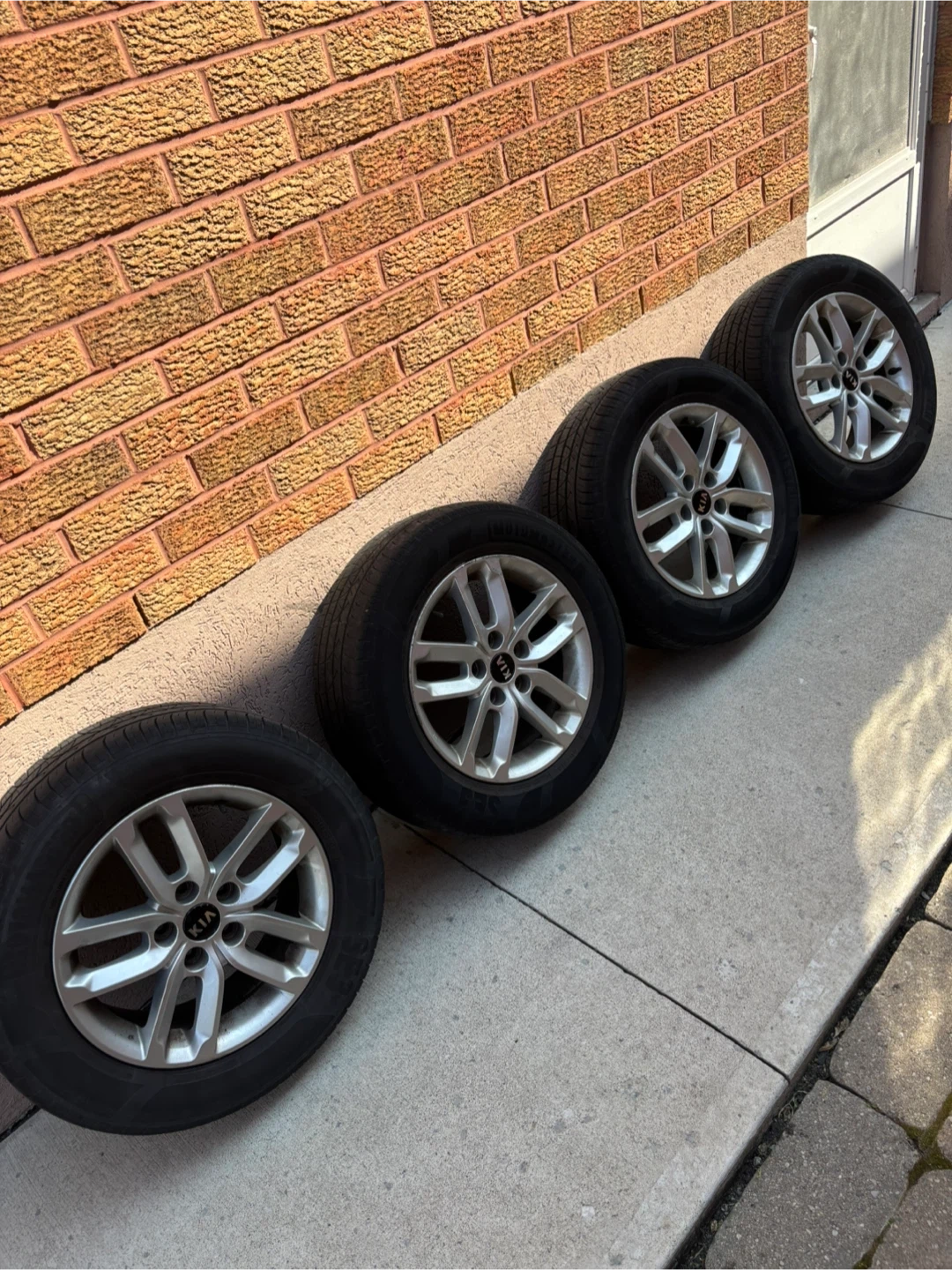 Selling a set of four Kia rims and tires. They're in good condition and ready to be put on your vehicle. Perfect for summer tires or as a spare set!
