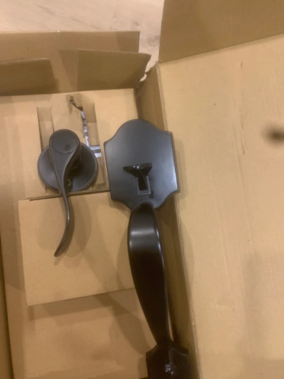 53Selling a Comfhouse front door lock handle set in matte black. It's an entry handleset exterior with an interior reversible lever. Perfect for adding a touch of modern style to your home!